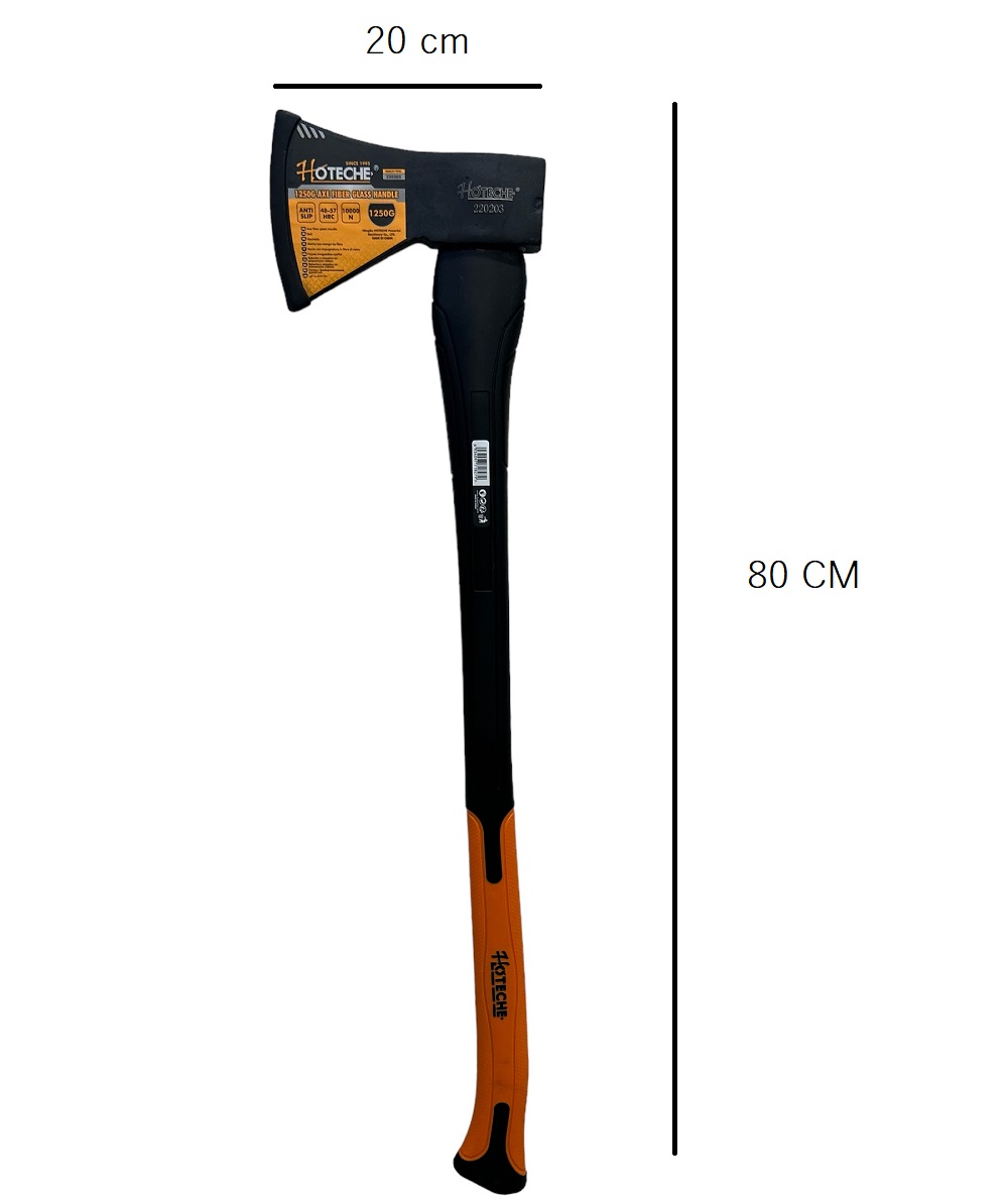 Realizzata in acciaio forgiato con lama temperata, manico sagomato con presa antiscivolo. Ascia con impugnatura antiscivolo in fibra di vetro.