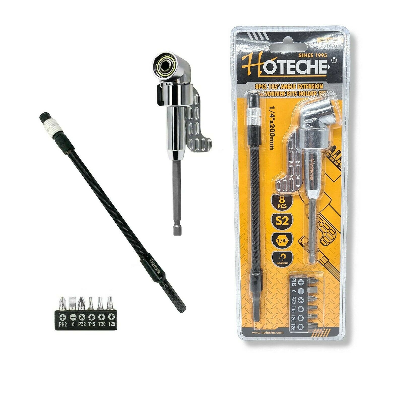 Comodissimo adattatore angolare a 105° per avvitatore/trapano, utile in zone dove il normale cacciavite dritto non può essere utilizzato o in quei spazi stretti dove l'avvitatore non entra.