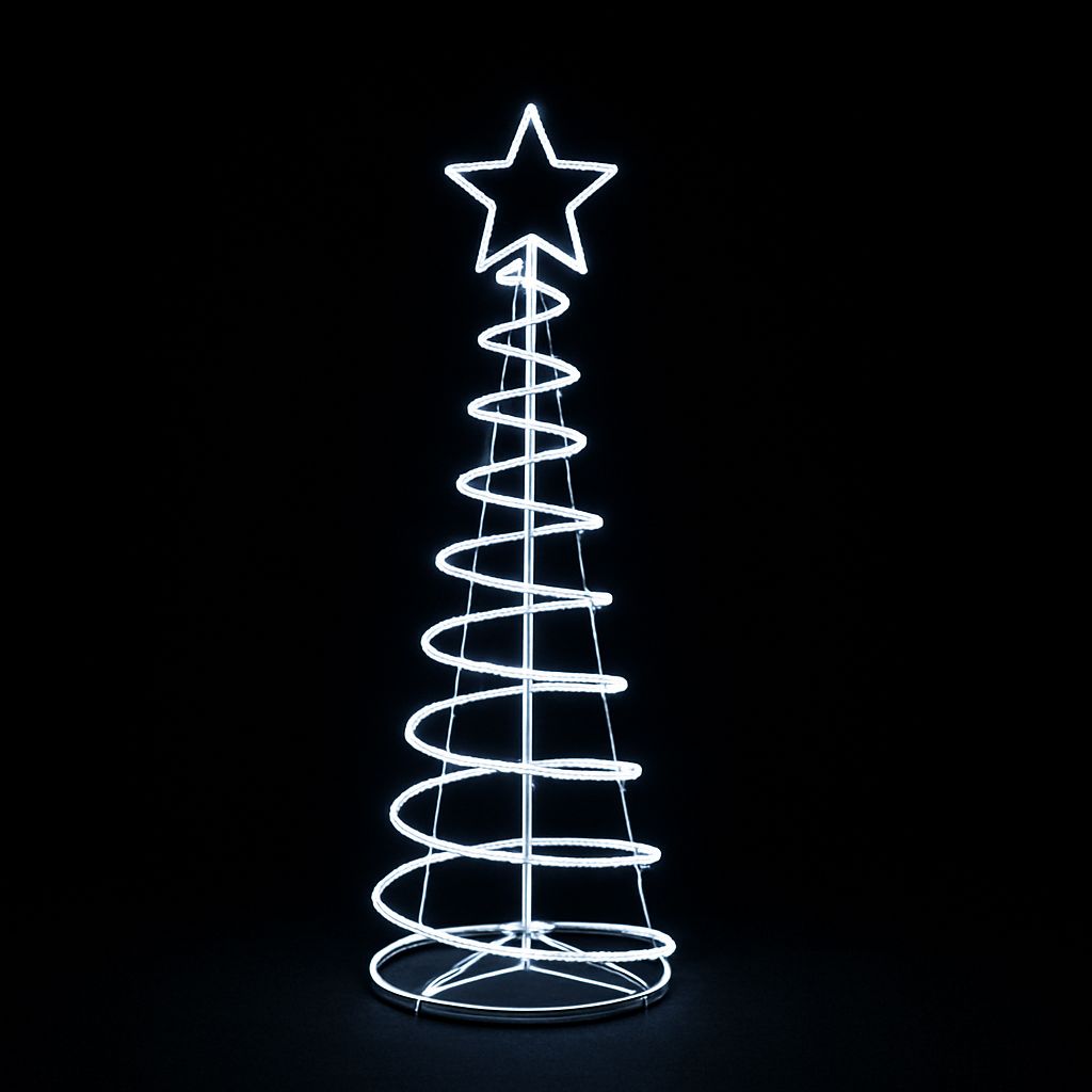 La spirale di luci definisce perfettamente la forma dell’albero, illuminando con un effetto brillante ma delicato, ideale per salotti, terrazze, giardini, balconi, negozi o vetrine.