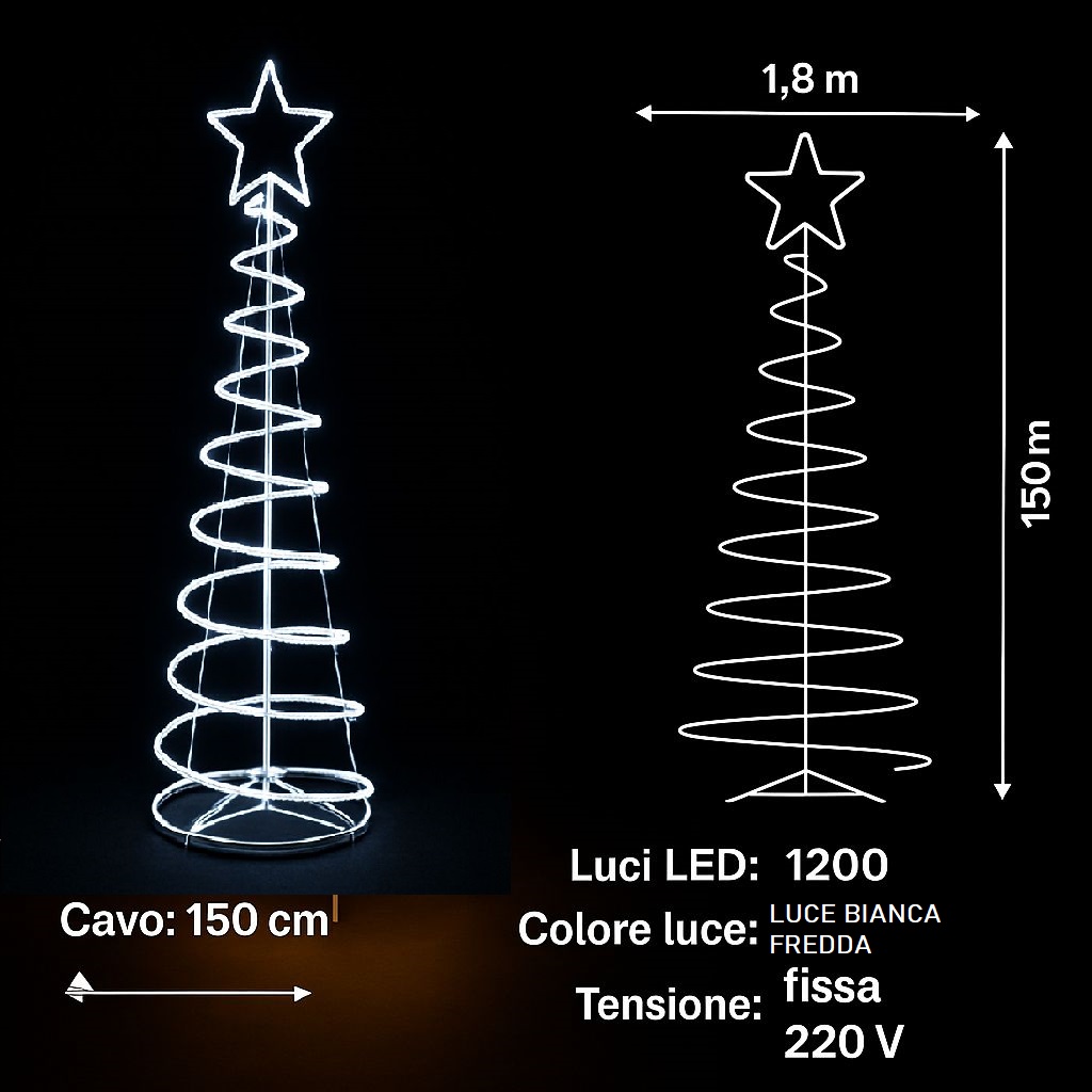 Albero di Natale in ferro Luminoso a Spirale 180 cm con 1200 LED Puntale a Stella per Interno ed Esterno Decorazione natalizia luce fredda