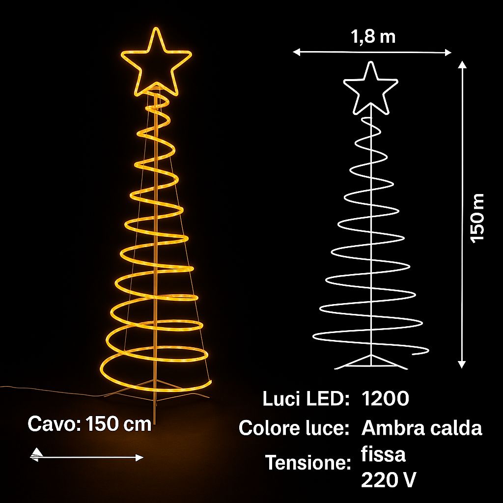 Rendi magico ogni ambiente con il raffinato Albero di Natale a Spirale da 180 cm con 1200 LED Super Bright. Il suo design moderno unisce eleganza e innovazione, trasformando ogni spazio interno o esterno in una scenografia luminosa natalizia.