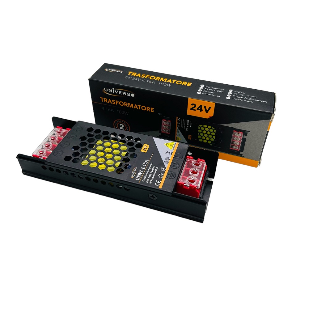 Alimentatore trasformatore slim 24V 4.16A 100W colore nero AC 180V - 240V per lampadine strisce led telecamere