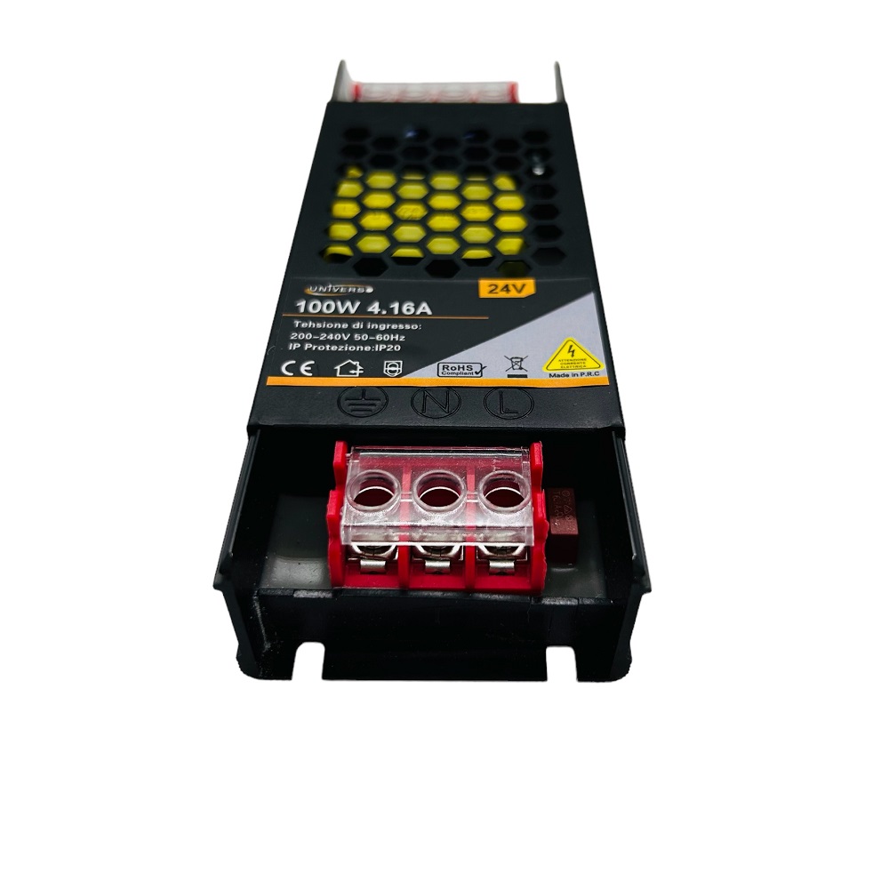 Alimentatore trasformatore slim 24V 4.16A 100W colore nero AC 180V - 240V per lampadine strisce led telecamere