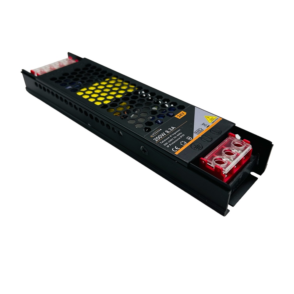 Alimentatore trasformatore slim ultra sottile 24V 8.3A 200W scocca in alluminio colore nero AC 180V - 240V trasformatore per lampadine strisce led telecamere