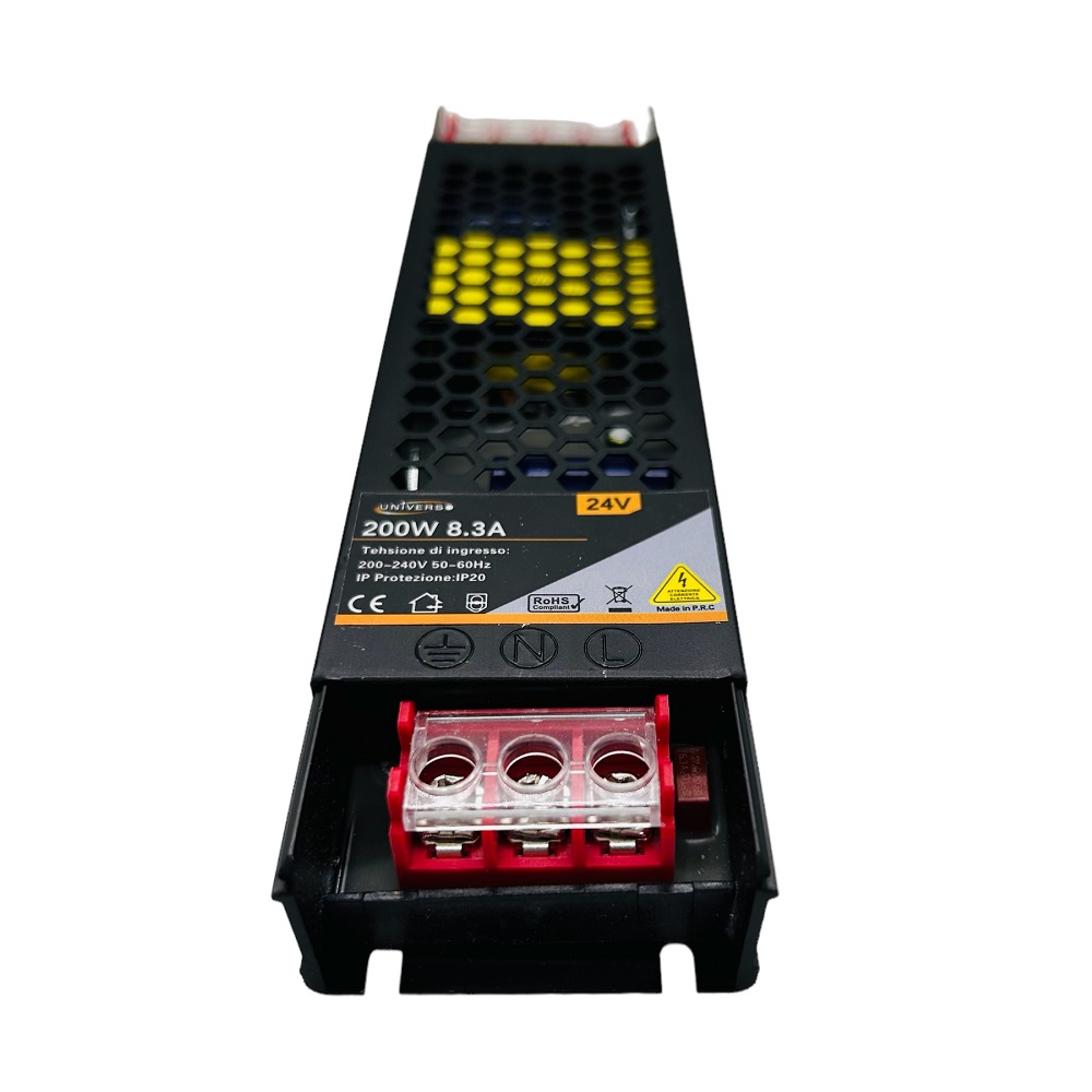 Alimentatore trasformatore slim ultra sottile 24V 8.3A 200W scocca in alluminio colore nero AC 180V - 240V trasformatore per lampadine strisce led telecamere