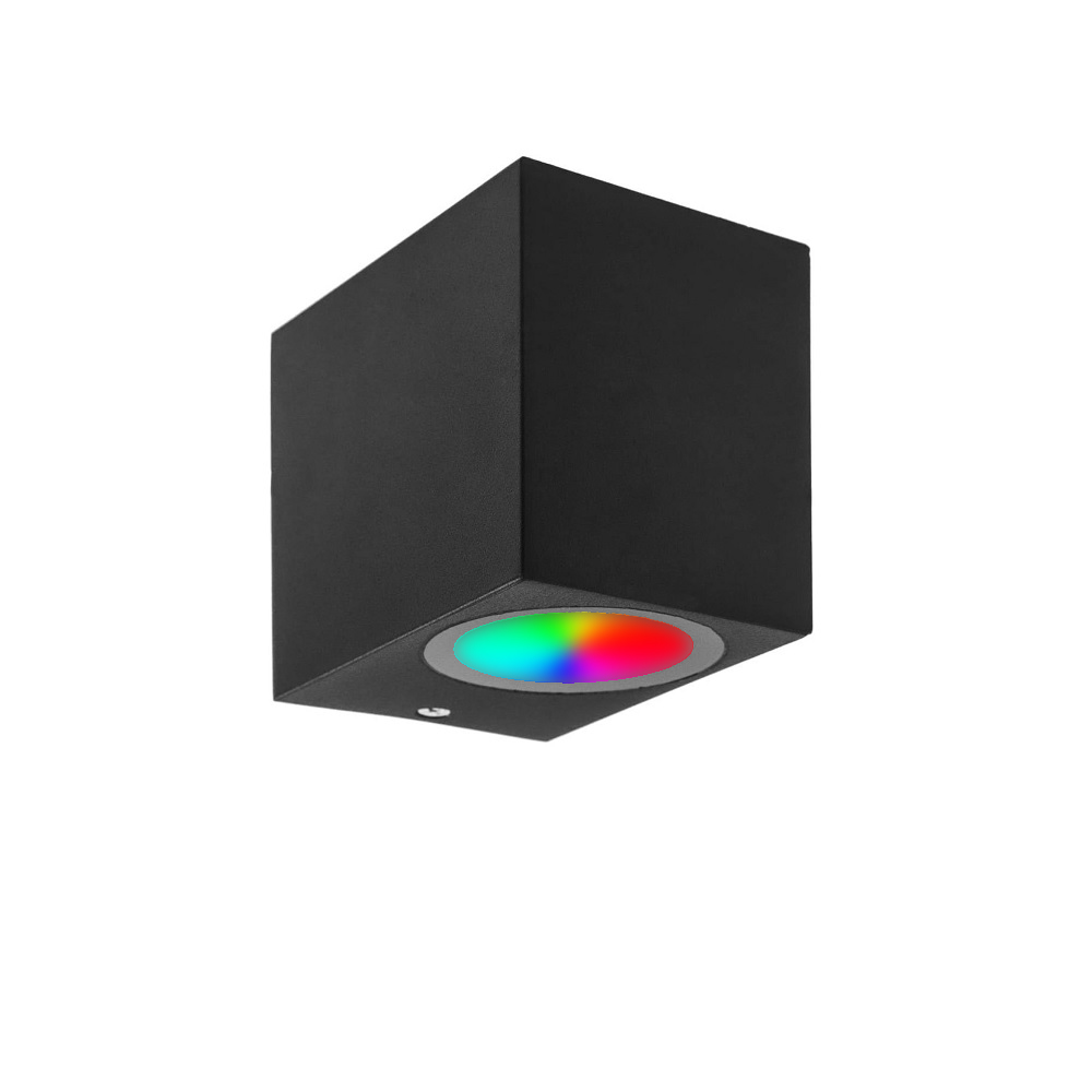 Applique Cubo Nero da Parete IP65 GU10 LED RGB + Bianco con Telecomando Lampada Moderna da Muro Interno Esterno Monoemissione in Alluminio