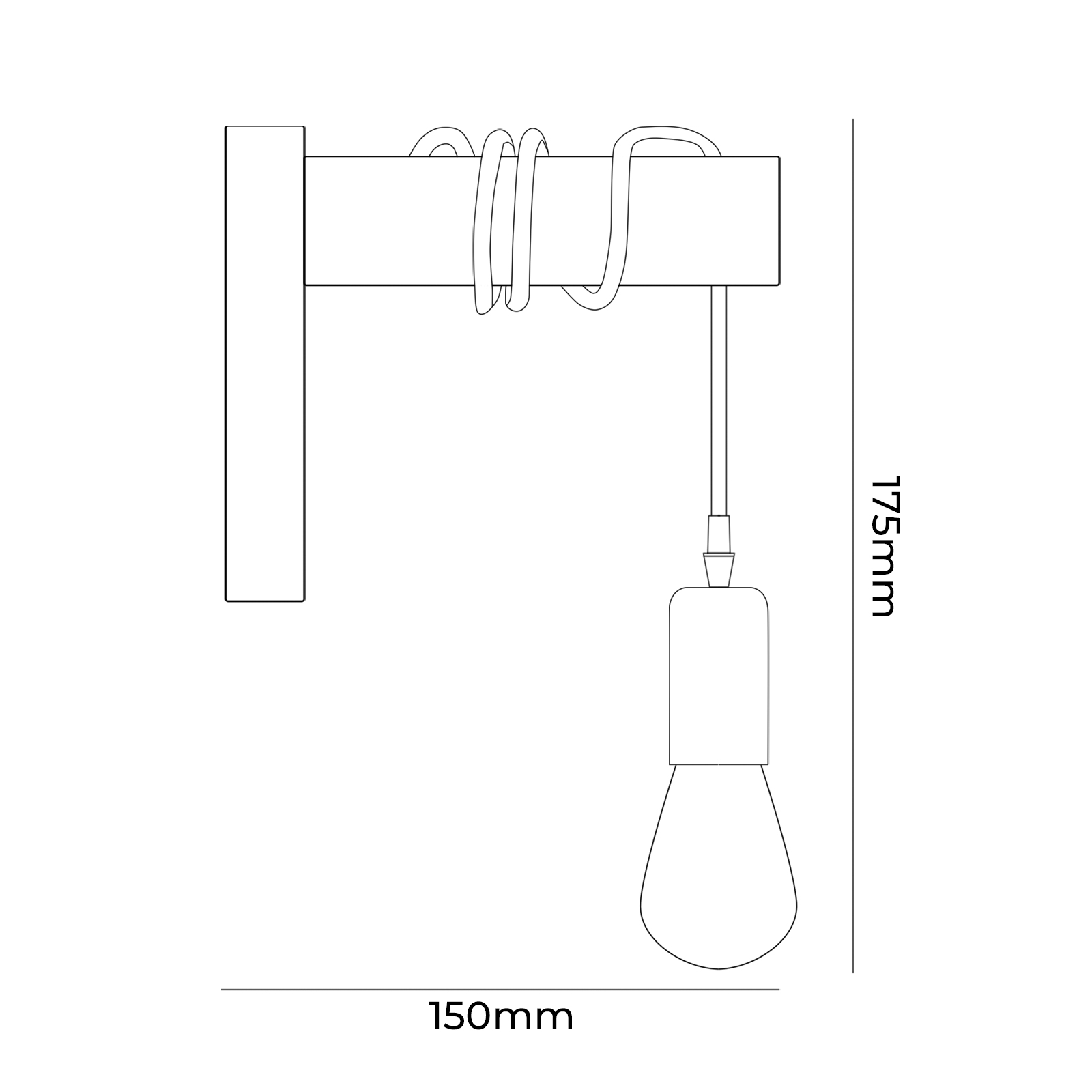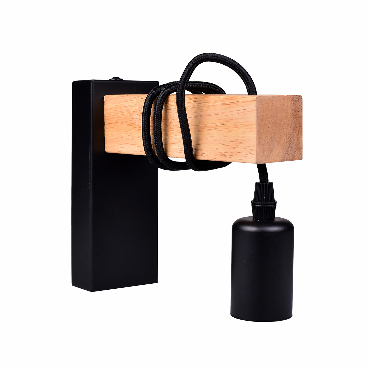 L’applique da parete con attacco E27 rappresenta l’incontro perfetto tra stile industriale e design moderno. La combinazione di metallo nero opaco e legno naturale dona al prodotto un’estetica minimalista ma d’impatto, rendendolo un elemento decorativo oltre che funzionale. Il braccio in legno, fissato perpendicolarmente alla base in metallo, sostiene elegantemente il portalampada e il cavo decorativo, creando una forma pulita e geometrica.