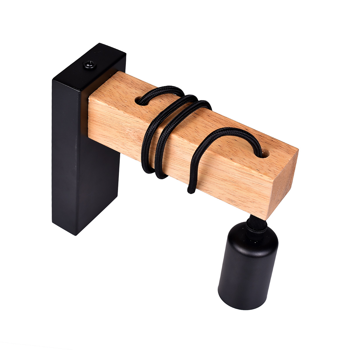 L’applique da parete con attacco E27 rappresenta l’incontro perfetto tra stile industriale e design moderno. La combinazione di metallo nero opaco e legno naturale dona al prodotto un’estetica minimalista ma d’impatto, rendendolo un elemento decorativo oltre che funzionale. Il braccio in legno, fissato perpendicolarmente alla base in metallo, sostiene elegantemente il portalampada e il cavo decorativo, creando una forma pulita e geometrica.