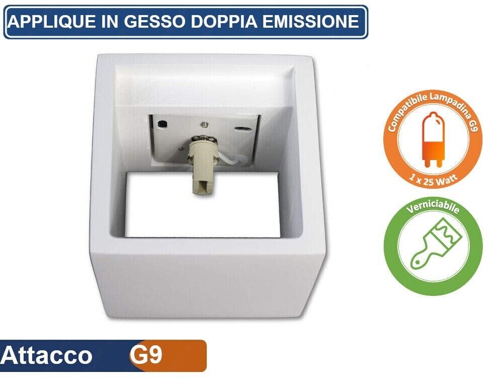 • Applique decorativo da parete in gesso a forma di Cubo, aperto sopra e sotto per offrire una luminosità a biemissione Up&down