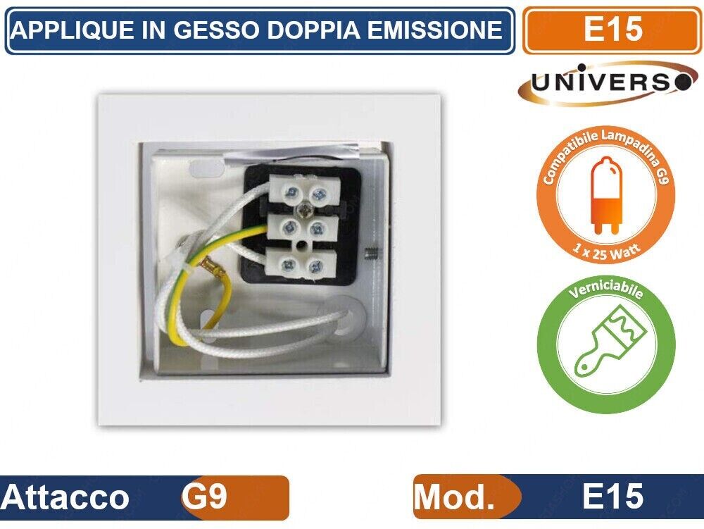 • Attacco per lampadine g9 (NON INCLUSA). Supporta lampadine con un wattaggio massimo di 24W – Materiale: Gesso – Colore: Bianco.