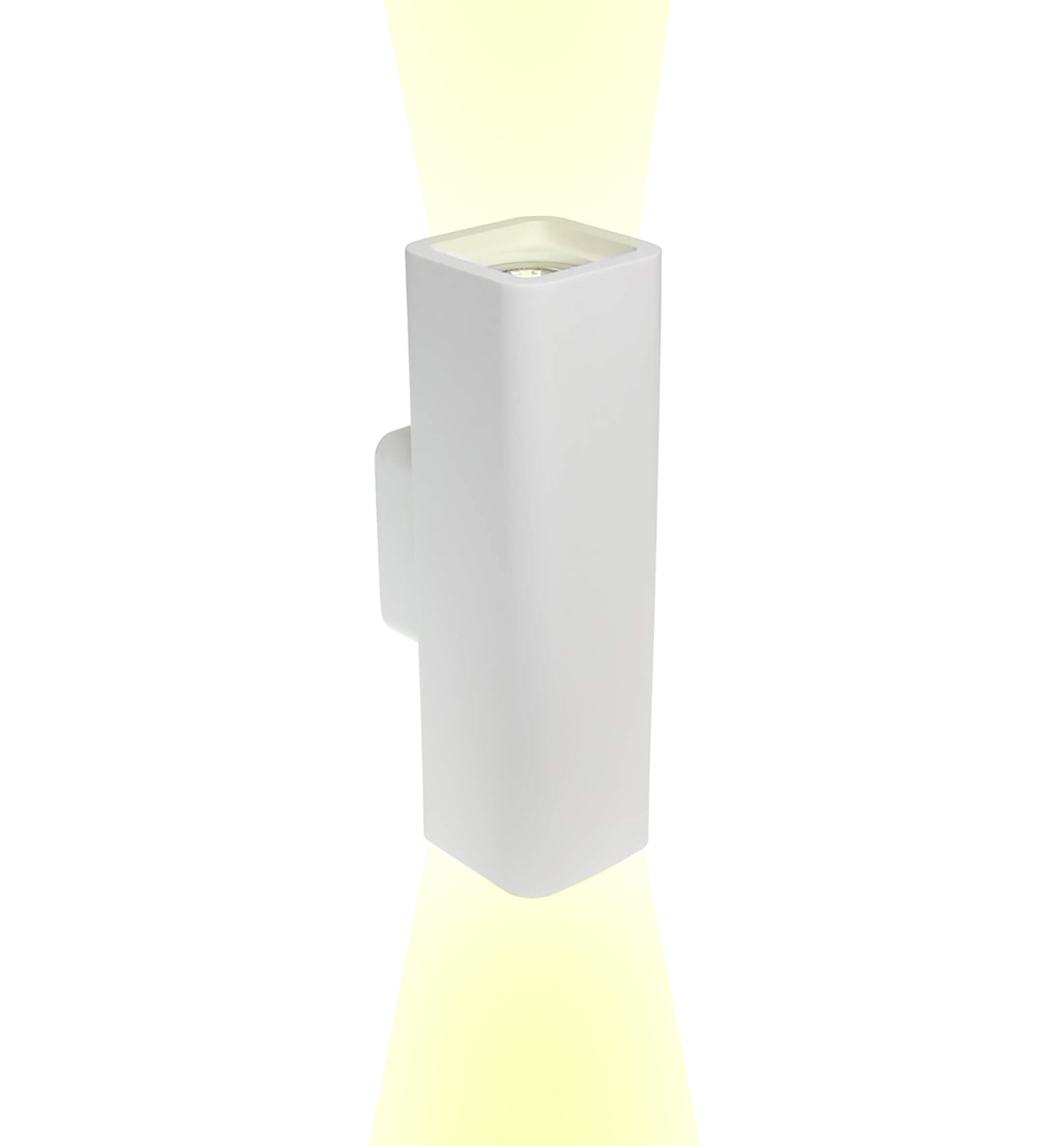 Applique in gesso design moderno a biemissione con doppio attacco per lampadine GU10 forma rettangolare