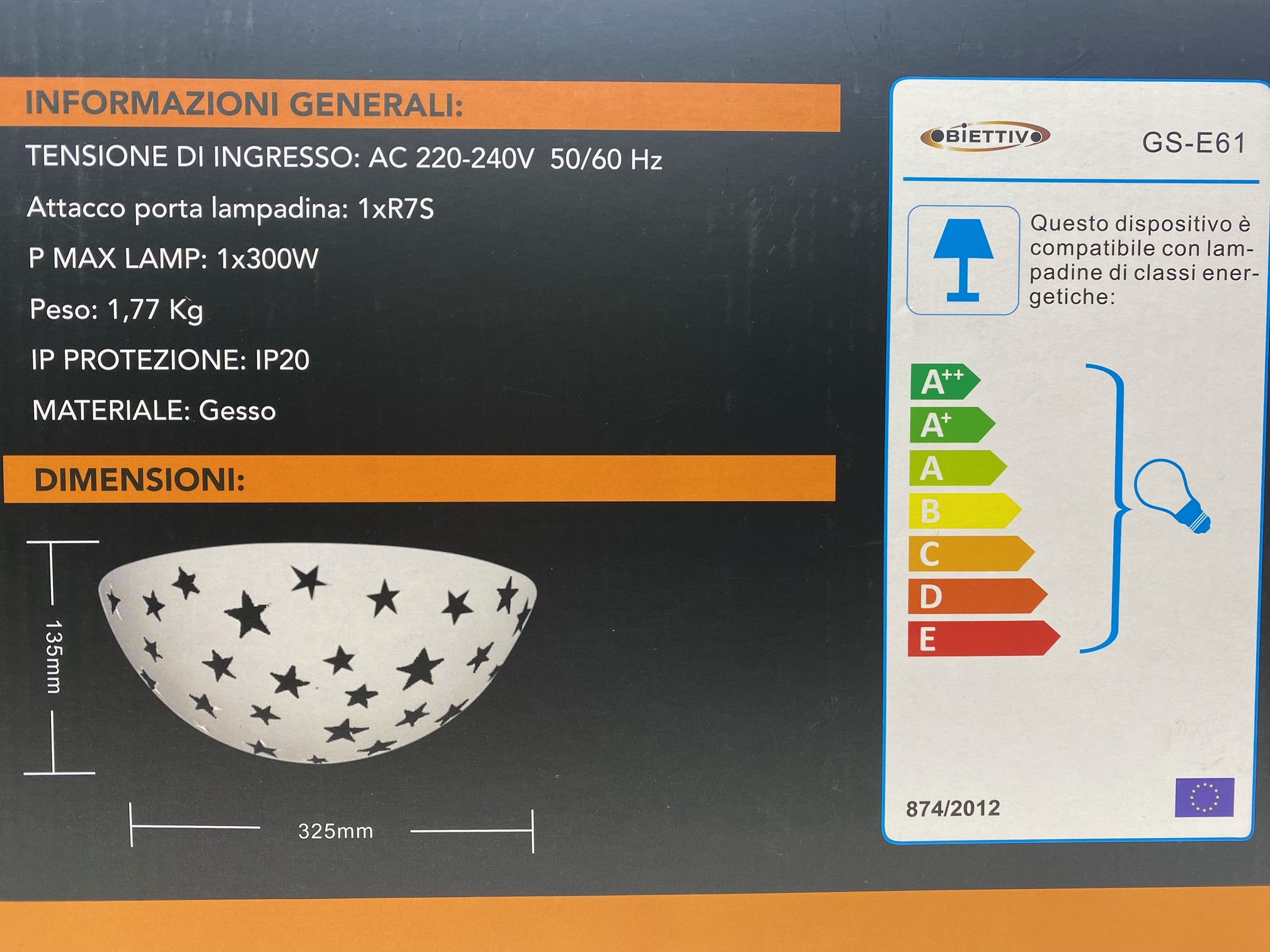 APPLIQUE IN GESSO LAMPADA DA PARETE A LED R7S STELLE LUMINOSE LUCE FREDDA 6500K