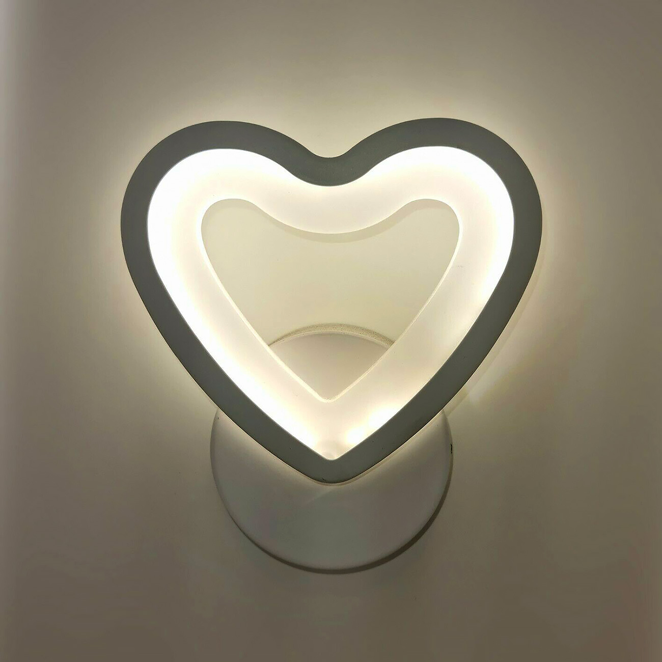Lampada moderna a forma di cuore da parete con led integrato dalla potenza 6W ideale per l'illuminazione interna di camere da letto - soggiorni - salotti - ingressi - all'interno di negozi - attività commerciali - uffici ed in tutti quei posti dove si vuole installare una lampada dal design stilizzato e moderno. Realizzata in alluminio verniciato di colore bianco con interno del cuore in vetro satinato ha un design adatto per ambienti moderni. Le sue dimensioni la rendono facile da installare, semplice da utilizzare e facile da pulire. Dotata di alimentatore si alimenta a 220V. L' applique è dotato di rosetta con staffa per il fissaggio a parete ed integra morsetti a pinza per un facile collegamento dei fili. L'accensione è immediata La plafoniera ha un angolo di luce diffusa di 300 gradi  Disponibile in 3 tonalità di luce: 4000K NATURALE