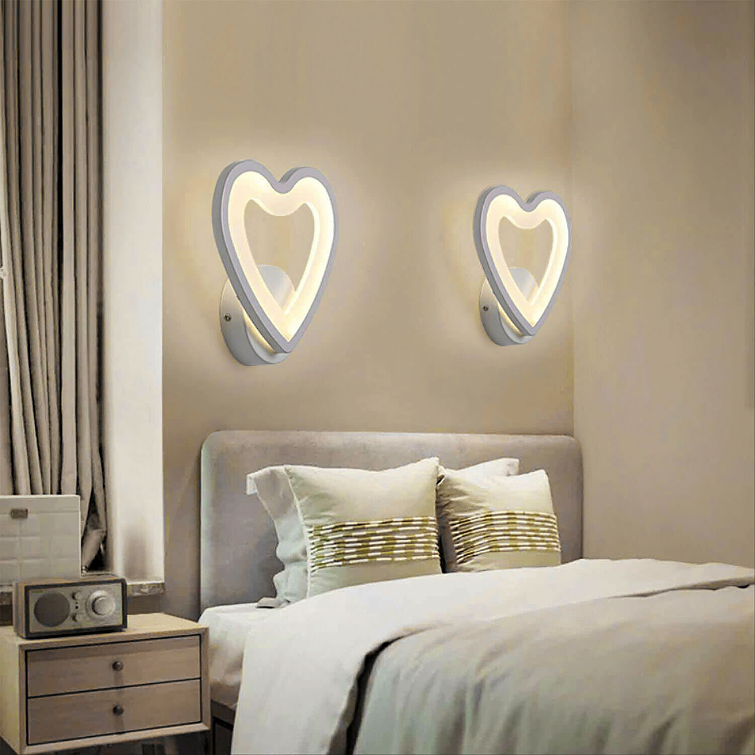 Lampada moderna a forma di cuore da parete con led integrato dalla potenza 6W ideale per l'illuminazione interna di camere da letto - soggiorni - salotti - ingressi - all'interno di negozi - attività commerciali - uffici ed in tutti quei posti dove si vuole installare una lampada dal design stilizzato e moderno. Realizzata in alluminio verniciato di colore bianco con interno del cuore in vetro satinato ha un design adatto per ambienti moderni. Le sue dimensioni la rendono facile da installare, semplice da utilizzare e facile da pulire. Dotata di alimentatore si alimenta a 220V. L' applique è dotato di rosetta con staffa per il fissaggio a parete ed integra morsetti a pinza per un facile collegamento dei fili. L'accensione è immediata La plafoniera ha un angolo di luce diffusa di 300 gradi  Disponibile in 3 tonalità di luce: 4000K NATURALE