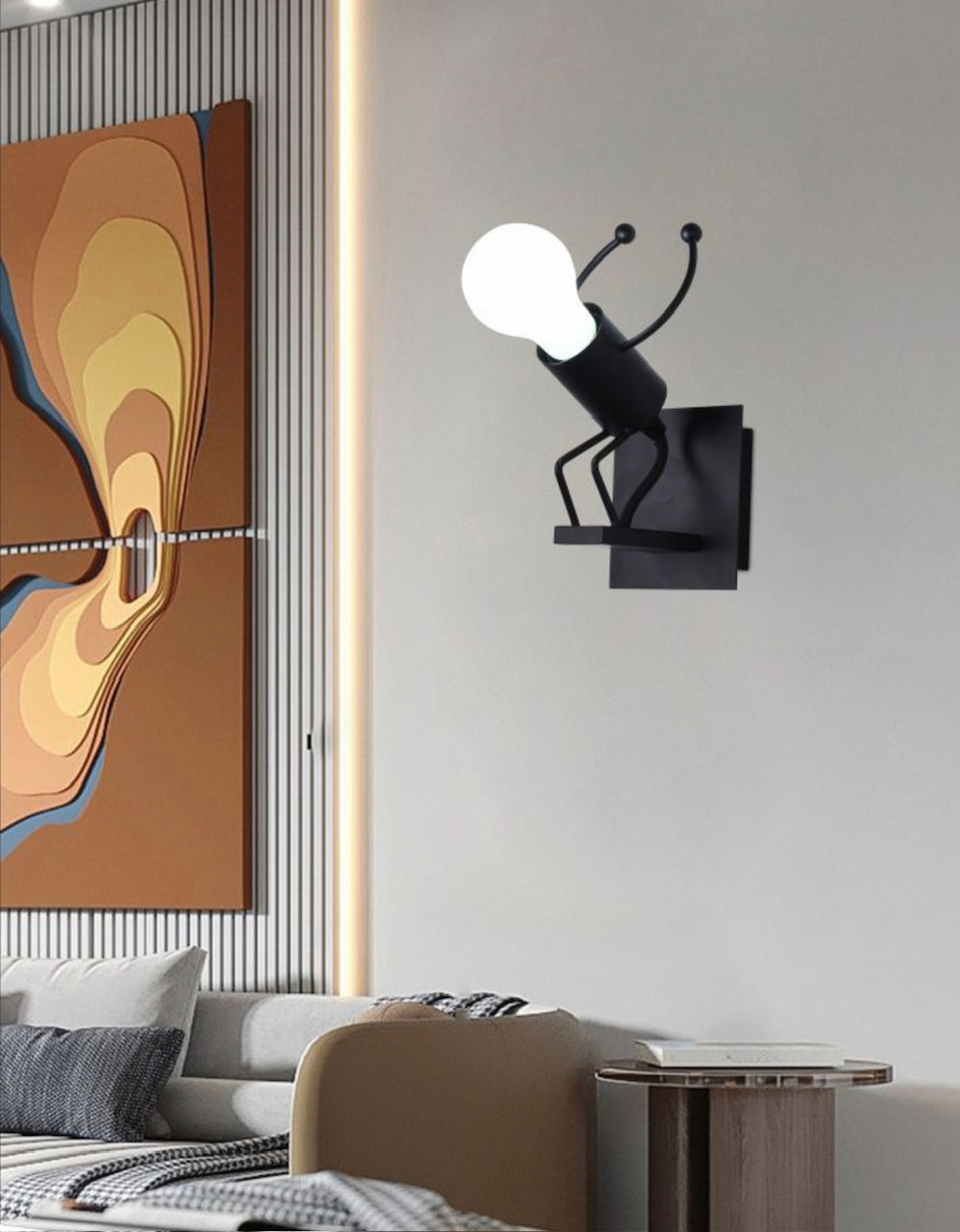 Applique Lampada da parete moderna con attacco E27 forma Omino Nero che salta