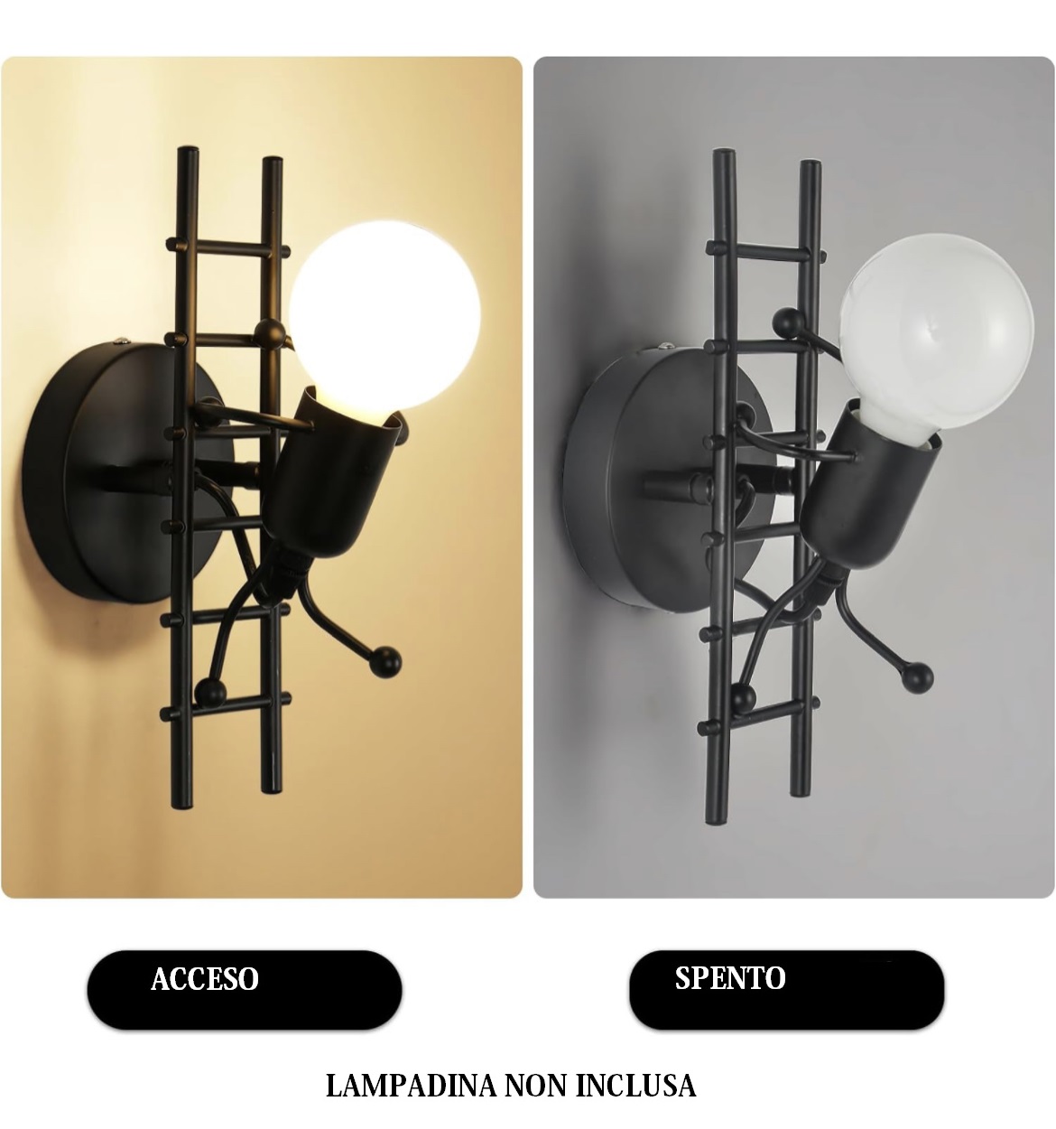 Applique Lampada da parete moderna con attacco E27 forma Omino Nero su scala