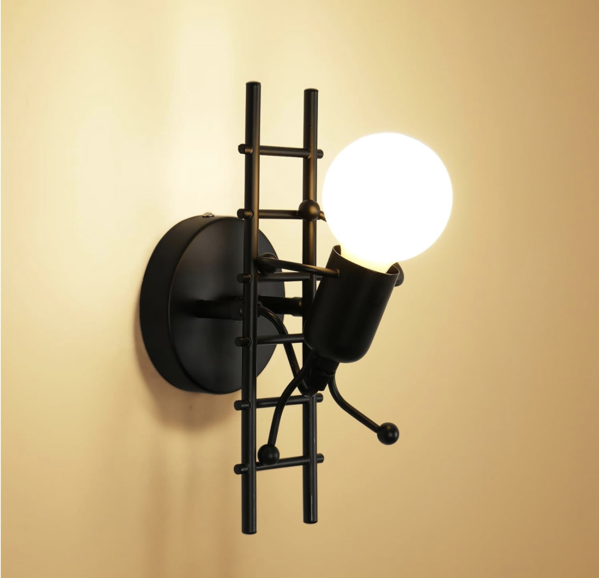 Applique Lampada da parete moderna con attacco E27 forma Omino Nero su scala