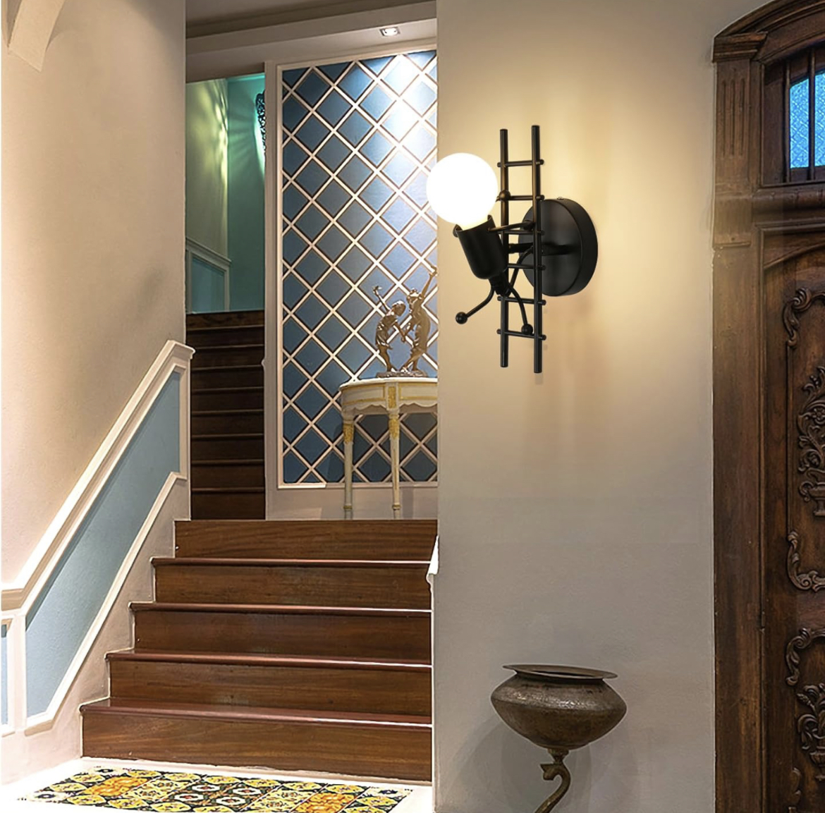 Applique Lampada da parete moderna con attacco E27 forma Omino Nero su scala