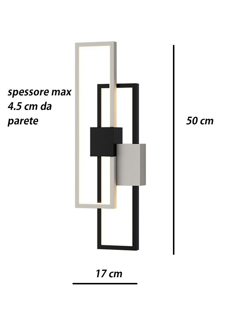 • Applique a led per interno moderno da parete a muro con forma lampada doppio rettangolo 23W x i 2 rettangoli. illuminazione Lampada moderna da parete con led integrati ideale per l'illuminazione interna di camere da letto - soggiorni - salotti - ingressi - all'interno di negozi - attività commerciali - uffici ed in tutti quei posti dove si vuole installare una lampada dal design stilizzato e moderno