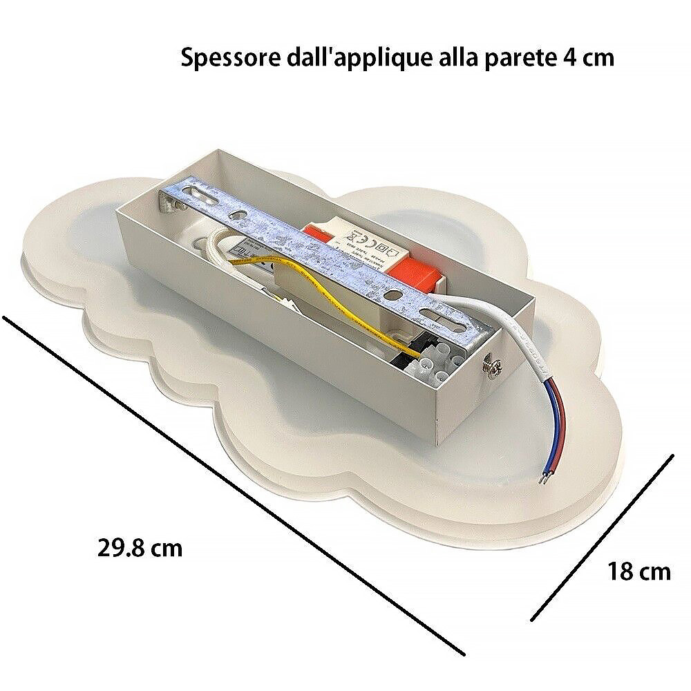 • Applique a led per interno moderno da parete a muro con forma di Nuvola potenza 9W illuminazione Lampada moderna da parete con led integrato dalla potenza 9W ideale per l'illuminazione interna di camere da letto per bambini - soggiorni - salotti - ingressi - all'interno di negozi - attività commerciali - uffici ed in tutti quei posti dove si vuole installare una lampada dal design stilizzato e moderno