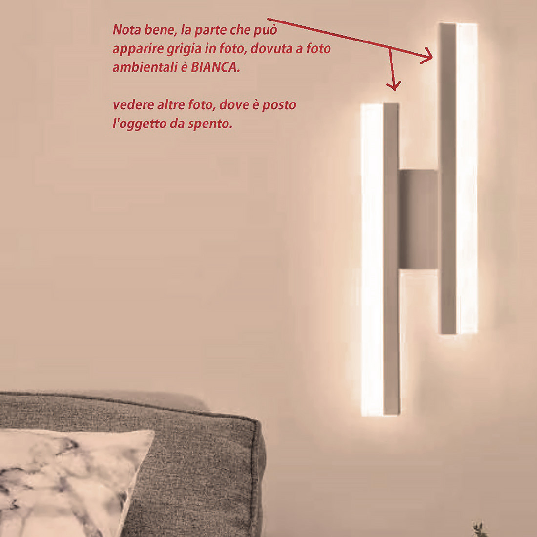 Nota bene: come segnalato in una delle nostre foto, l'applique non è grigio e bianco come può sembrare da foto ambientale ma è in Metalloalluminio bianco + acrilico.