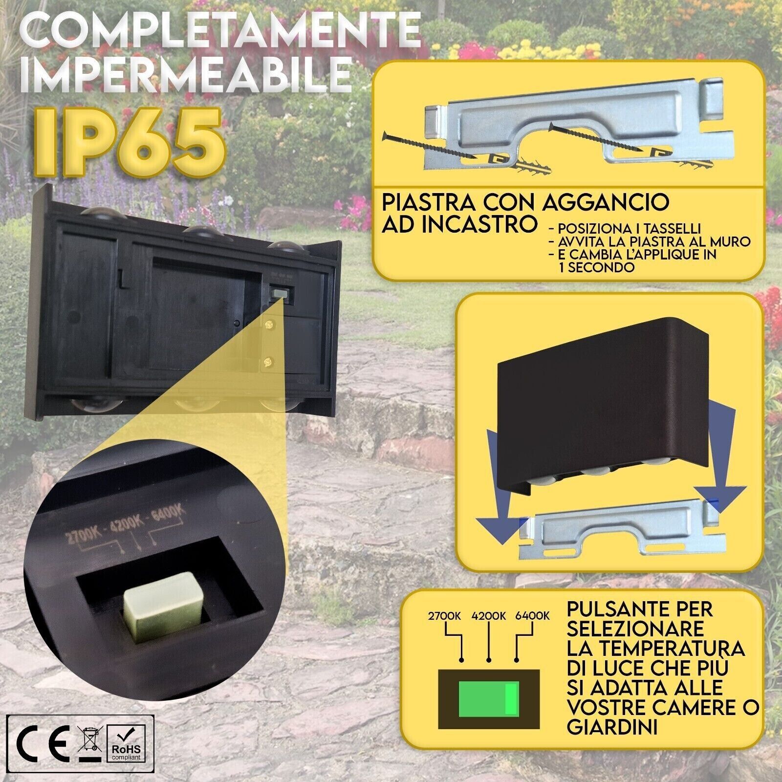 Applique lampada a LED da parete muro esterno e interno tonalità luce regolabile