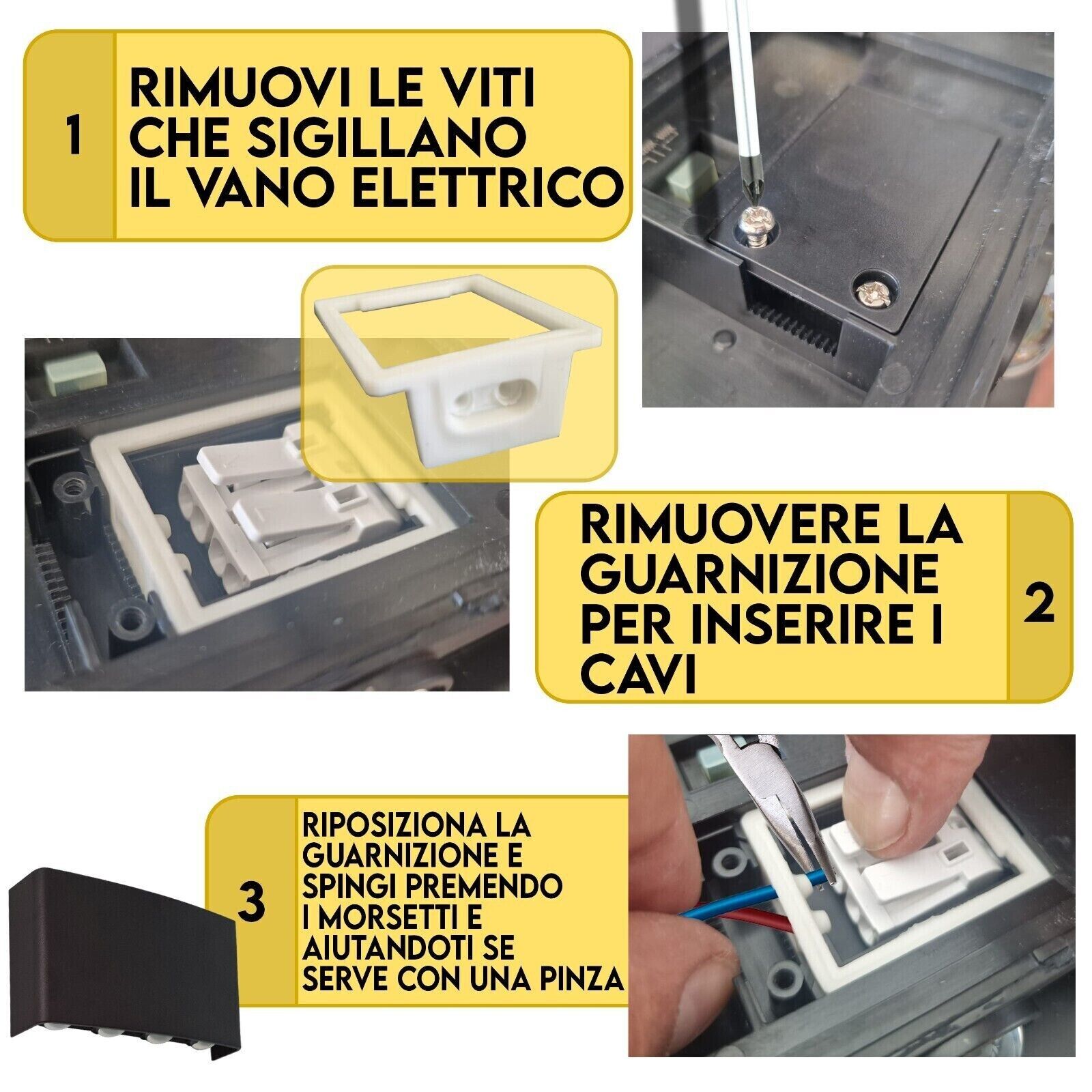 6. Nota bene: Il modello da 4w ha 2 led sopra e 2 sotto, quello da 6w ha 3 led sopra e 3 sotto ed infine il modello da 8w ha 4 led sopra e 4 sotto.