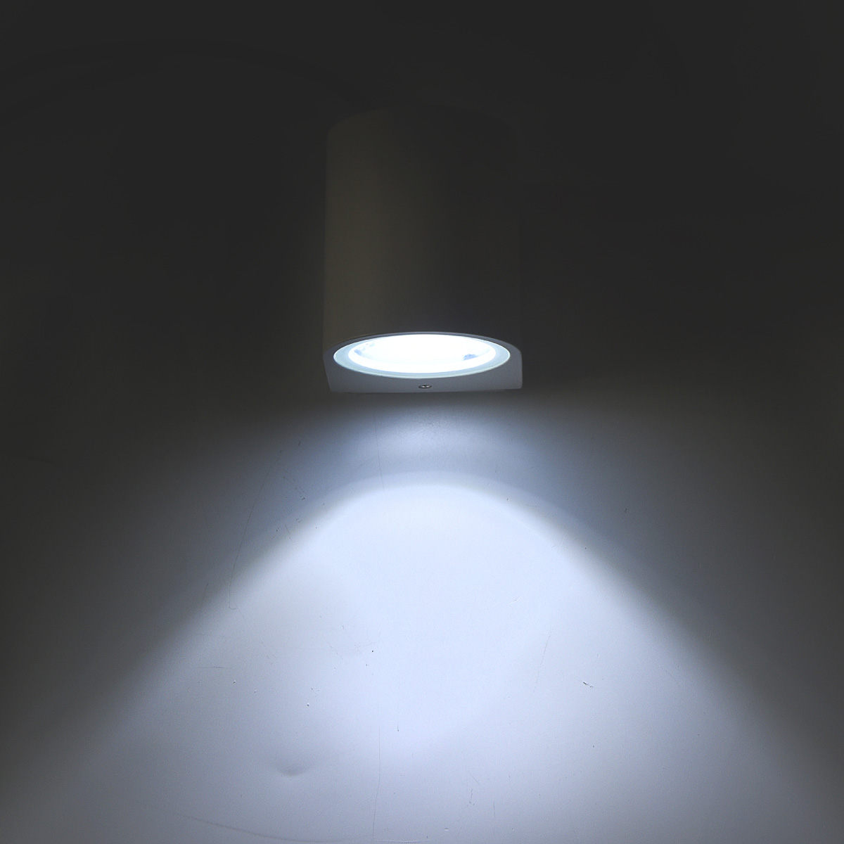 Infografica Applique LED 3W Luce Bianca Fredda 6500K° per Uso InternoApplique LED Semicilindrica Installata a Parete in Ufficio Accesa Luce Fredda