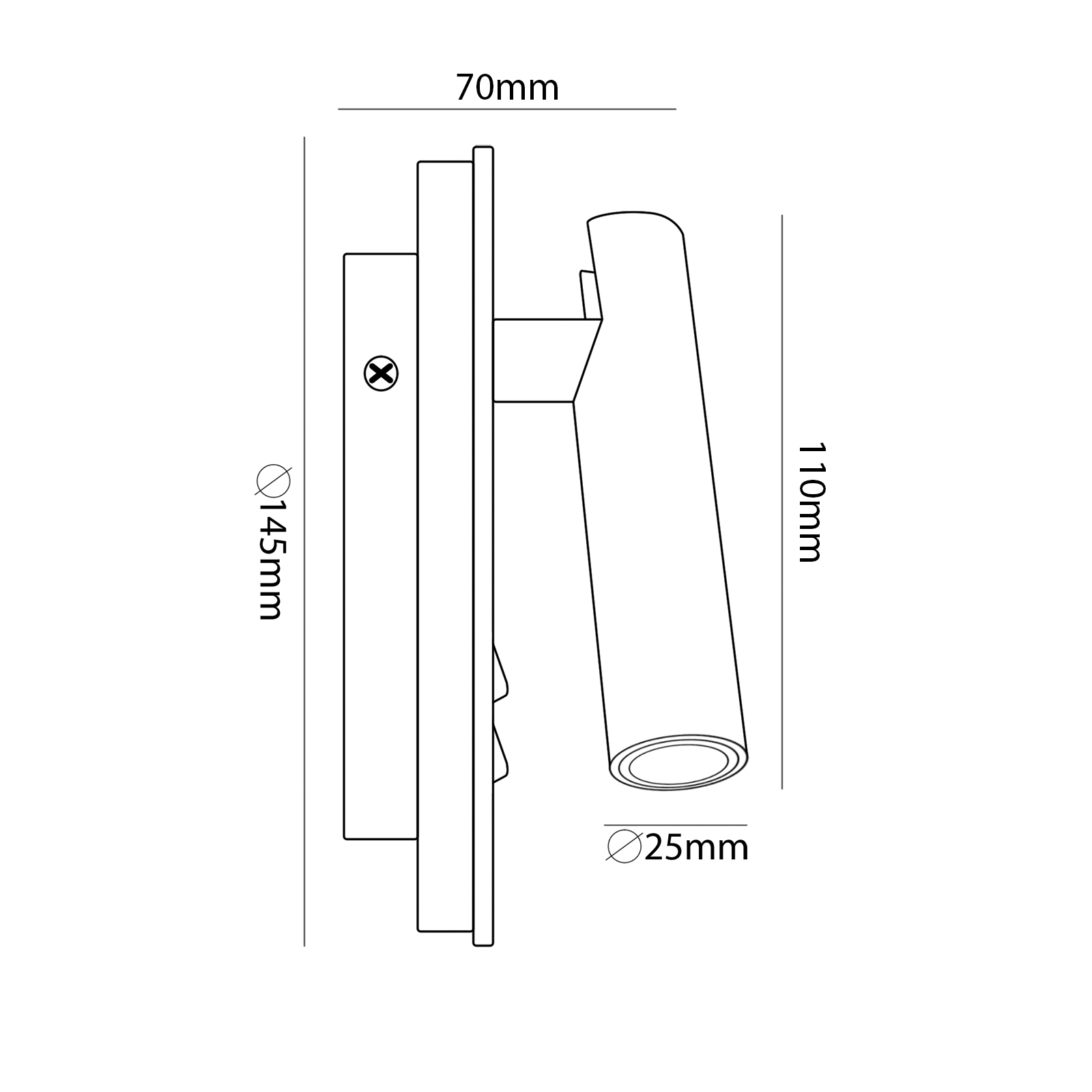 Schema Dimensioni 145 x 70 mm Applique LED 8W Doppia Emissione Luminosa a Luce Calda per InterniApplique LED 8W Bianca Installata a Parete Accesa Luce Calda 3000K°