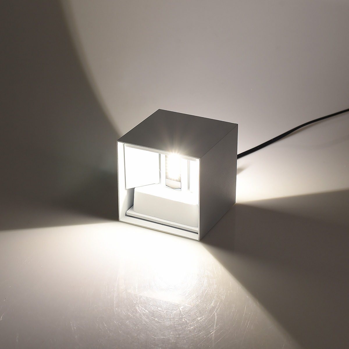 L'applique LED cubo bianco 12W con luce regolabile rappresenta una soluzione di illuminazione esterna ed interna versatile e di alta qualità, ideale per chi cerca un prodotto che combina funzionalità e design estetico. Questa lampada da parete ha un grado di protezione IP65, che la rende resistente agli agenti atmosferici e perfetta per l'uso esterno. La sua struttura in alluminio garantisce una lunga durata e una eccellente dissipazione del calore, permettendo una vita operativa dei LED fino a 25.000 ore. Il design moderno e minimale del Cubo Bianco si adatta perfettamente a qualsiasi contesto architettonico, sia moderno che tradizionale, rendendolo un complemento d'arredo funzionale e decorativo per il perimetro di immobili, come abitazioni private, uffici, hotel e negozi. La possibilità di regolare l'angolo di emissione della luce permette di creare ambientazioni personalizzate, da una luce diffusa ad un fascio di luce più diretto e concentrato, come mostrato nelle immagini. L'installazione dell'applique è semplice e diretta, grazie agli accessori inclusi, quali viti di fissaggio, e richiede solo due fori per l'inserimento delle viti. Il collegamento alla rete elettrica è facilitato dall'alimentatore integrato che supporta una tensione di ingresso di 220-240V AC. Questa caratteristica rende l'applique LED Cubo Bianco non solo facile da installare, ma anche estremamente sicura. Dal punto di vista del consumo energetico, la lampada è altamente efficiente. Con un consumo di soli 12 watt e una resa luminosa di 1000 lumen, garantisce un'illuminazione adeguata con un basso impatto sui costi energetici. La temperatura del colore di 4000K fornisce una luce naturale che è confortevole per gli occhi e migliora l'atmosfera degli spazi senza distorcere i colori naturali dell'ambiente. Grazie alla sua doppia emissione di luce, questa applique offre una illuminazione sia verso l'alto che verso il basso, creando un suggestivo effetto luminoso lungo le pareti. Questa caratteristica è particolarmente apprezzata in progetti di design illuminotecnico dove è importante valorizzare gli elementi architettonici attraverso l'uso strategico della luce. In aggiunta, la resistenza del materiale e la finitura di alta qualità proteggono la lampada da intemperie e corrosione, garantendo performance ottimali e mantenendo inalterato l'aspetto estetico nel tempo