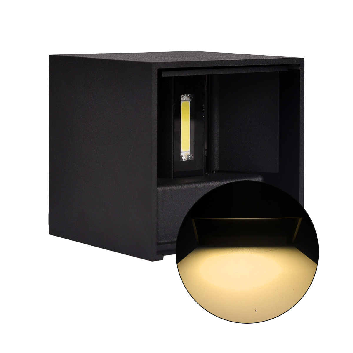 Infografica Applique LED Cubo Nero in Alluminio Luce Calda IP65 per Esterni