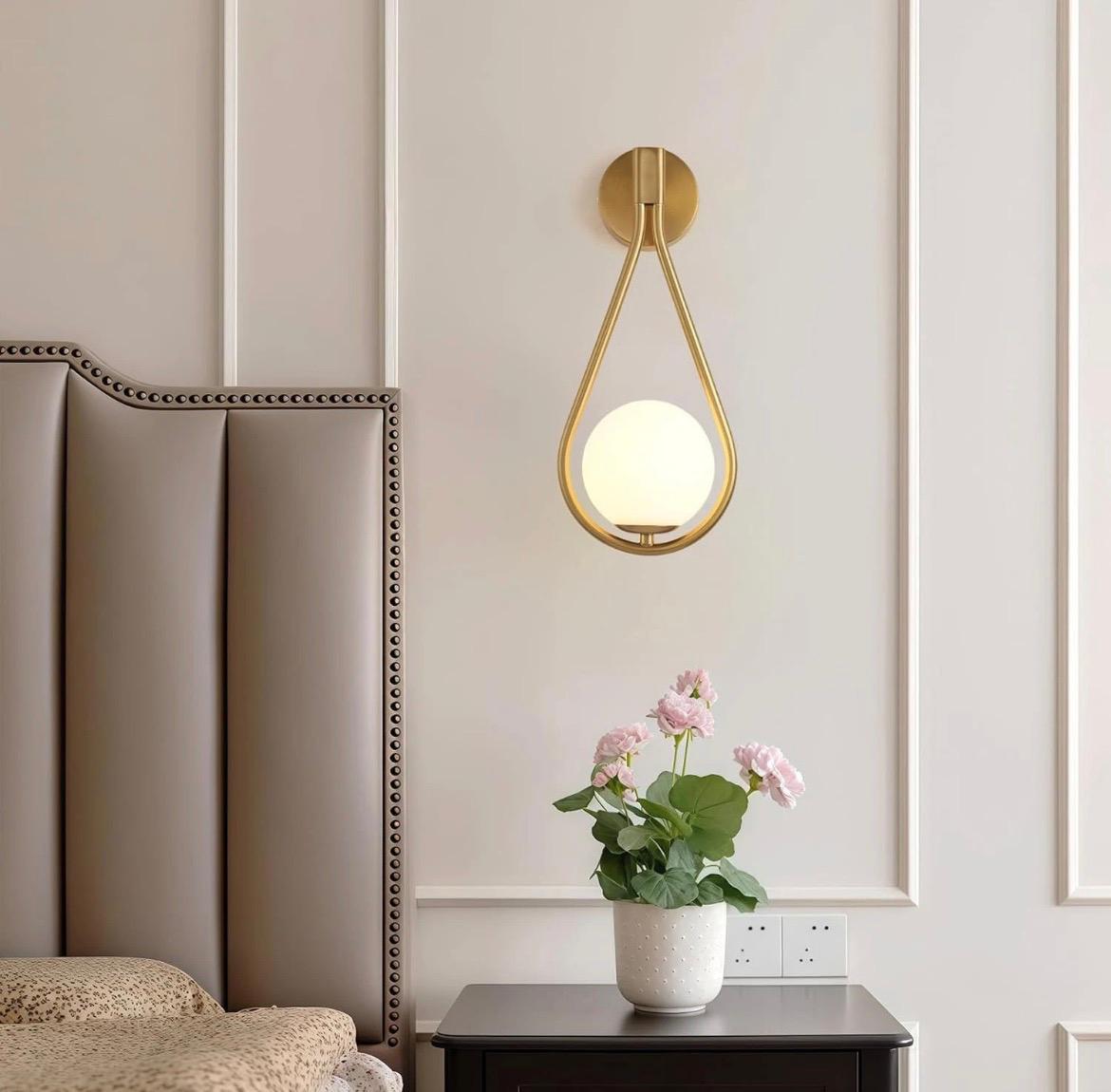 Applique da Parete LED G9 in Ottone – Design a Goccia con Sfera Opalina