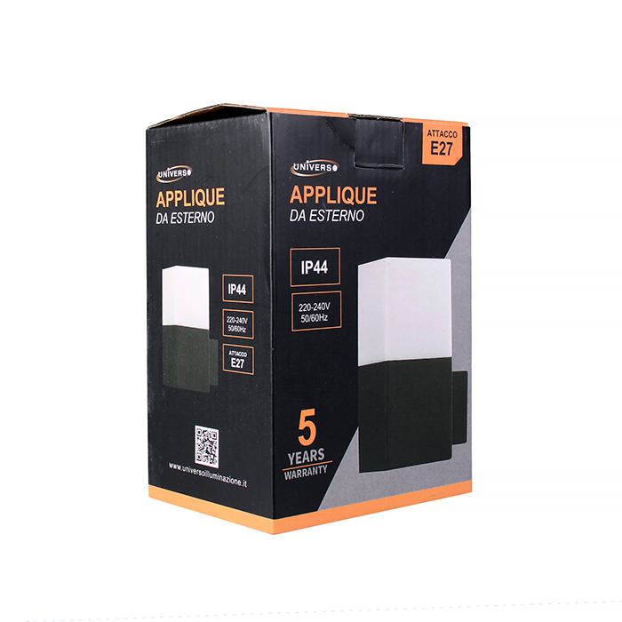 L'applique parallelepipedo con attacco E27 in alluminio nero e acrilico è una soluzione di illuminazione elegante e versatile, adatta per arredare gli ambienti con uno stile moderno e minimalista. La sua forma a parallelepipedo offre un design distintivo, che aggiunge un tocco contemporaneo all'arredo di qualsiasi spazio. Realizzata con materiali di alta qualità, questa lampada da parete è costituita da una combinazione di alluminio e acrilico, fornendo una struttura resistente e duratura nel tempo. La copertura in acrilico trasparente permette una diffusione uniforme della luce, illuminando in modo omogeneo l'ambiente circostante. La compatibilità con lampadine E27 offre la flessibilità di scegliere tra diversi tipi di lampadine, comprese quelle a LED e tradizionali. La lampada supporta una potenza massima di 12W, rendendola ideale per fornire una fonte luminosa efficiente in varie situazioni. Con una tensione di alimentazione tra 220-240V AC e una frequenza di 50/60 Hz, l'applique è compatibile con la maggior parte delle infrastrutture elettriche e presenta un grado di protezione IP44, rendendola resistente agli schizzi d'acqua e utilizzabile sia all'interno che all'esterno. Le sue dimensioni compatte, di 160x110x78 mm, consentono di installarla facilmente su pareti di qualsiasi tipo, mentre le viti di fissaggio incluse facilitano il processo di montaggio. Oltre alle sue specifiche tecniche, questa applique offre una combinazione di praticità ed estetica. La scelta dei materiali e la cura dei dettagli nel design assicurano che si integri armoniosamente in una vasta gamma di stili decorativi, dal minimalista al moderno. È particolarmente adatta per illuminare corridoi, salotti, camere da letto o studi, aggiungendo un tocco di classe con la sua struttura raffinata. Inoltre, grazie alla protezione IP44, può essere installata all'esterno in aree riparate come porticati o ingressi, fornendo una luce sicura e piacevole. L'utilizzo di lampadine LED E27 (non incluse) consente di risparmiare energia senza compromettere la qualità dell'illuminazione. Durante l'installazione, è importante assicurarsi che l'alimentazione elettrica sia scollegata per evitare qualsiasi rischio. L'altezza e la posizione dell'applique devono essere considerate attentamente per garantire una distribuzione ottimale della luce. Il prodotto è dotato di tutte le istruzioni necessarie per un montaggio rapido e sicuro