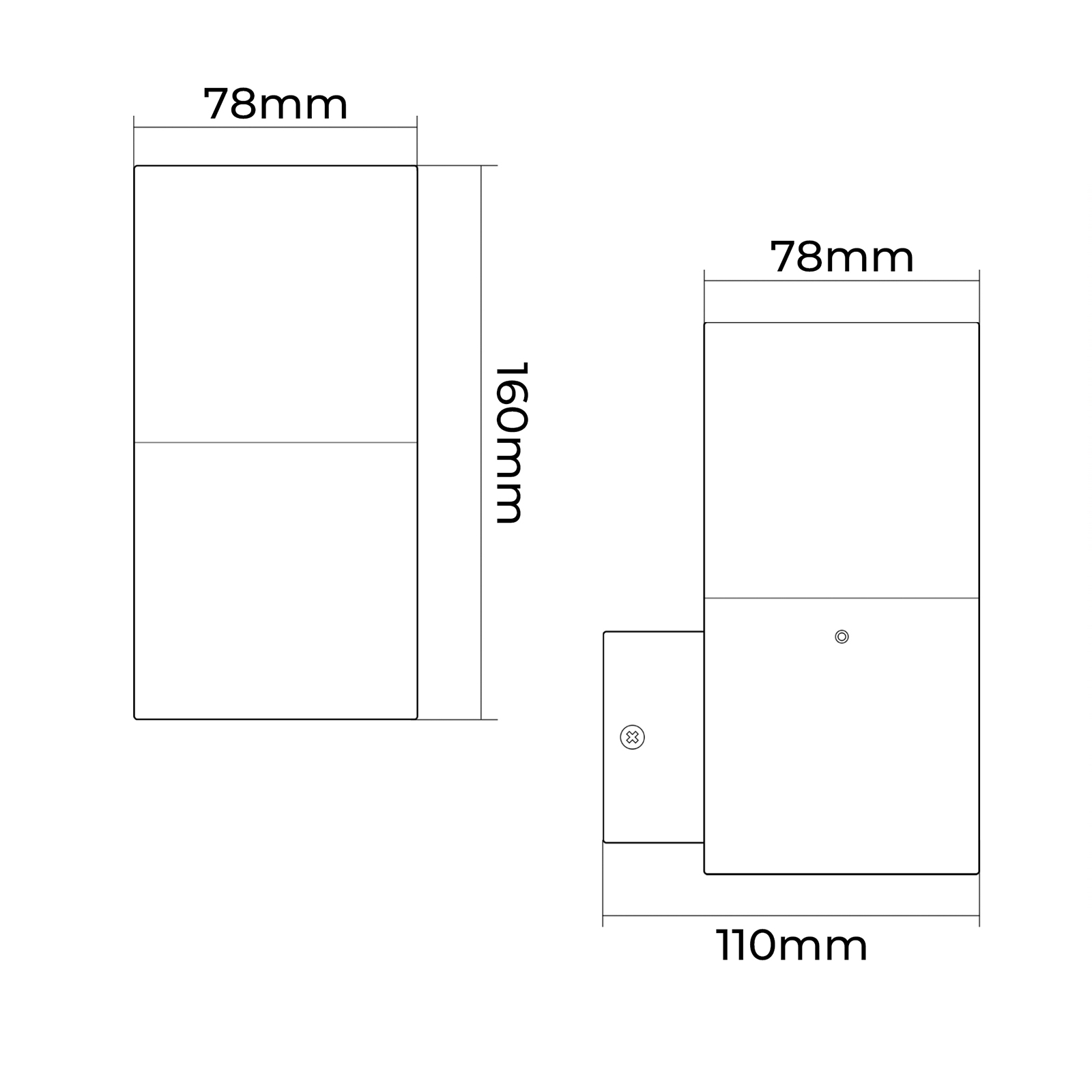Infografica Applique con Attacco E27 a Forma di Parallelepipedo con Dimensioni 160x110x78mm