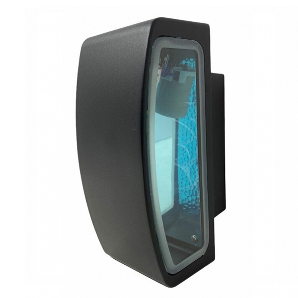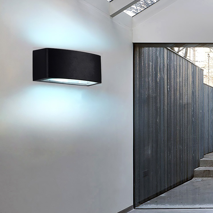 Lampada a parete con struttura in alluminio pressofuso e vetro.