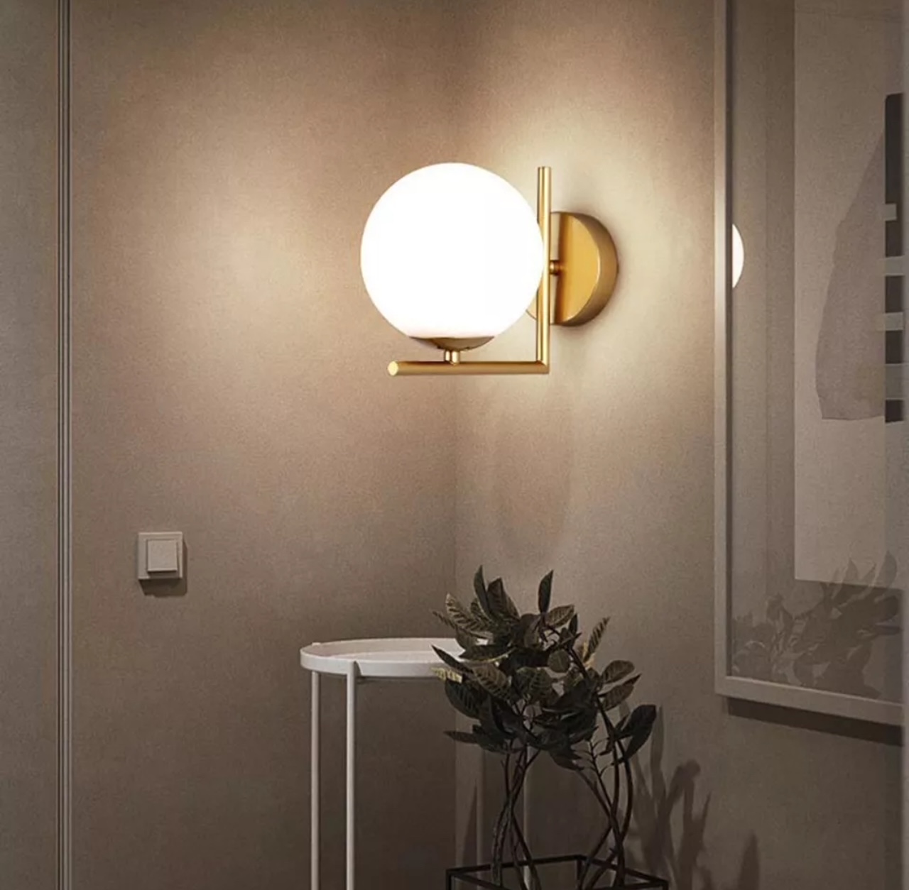Applique lampada da parete moderna in metallo colore oro sfera in vetro opaco per interni casa salotto stanza da letto attacco Lampadine LED G9