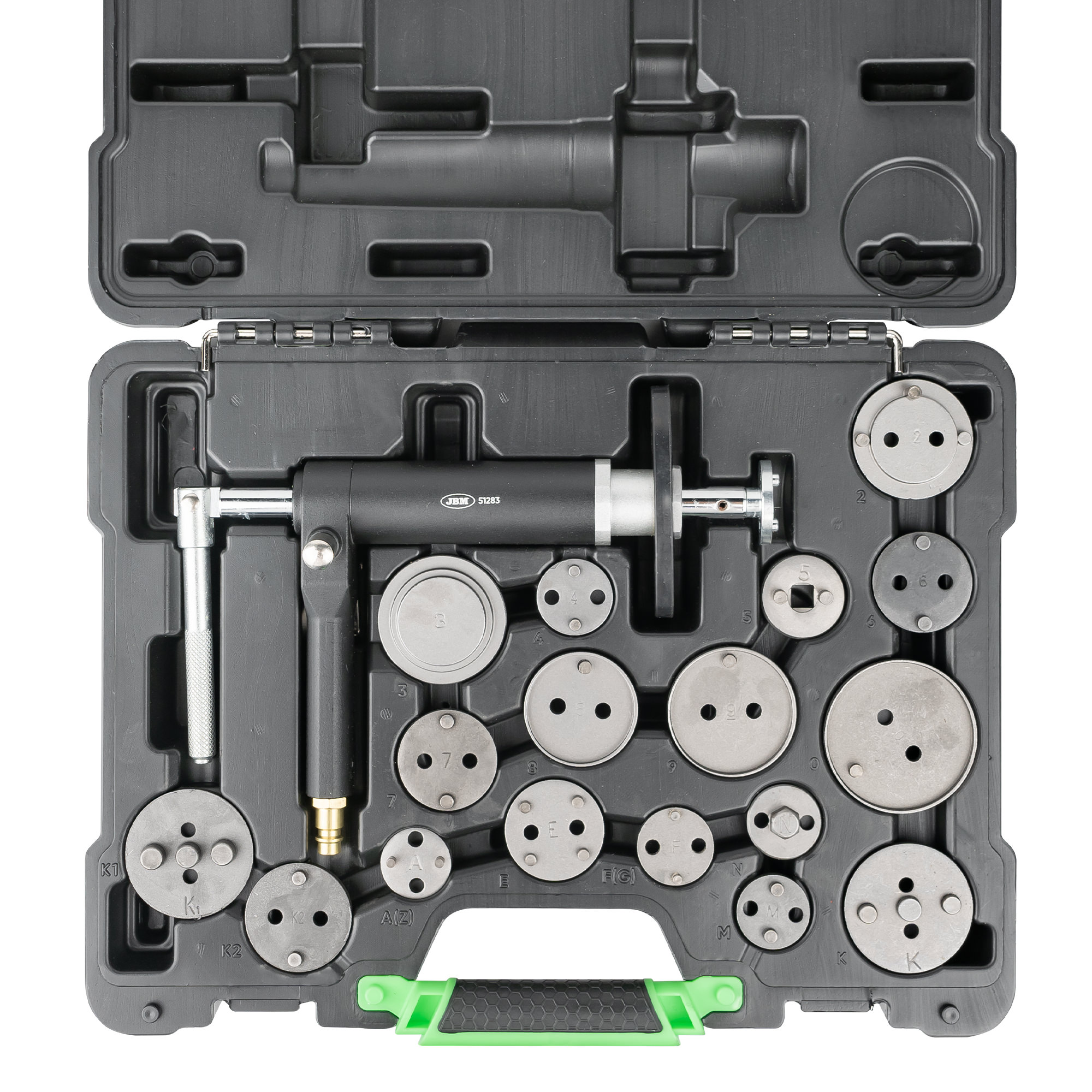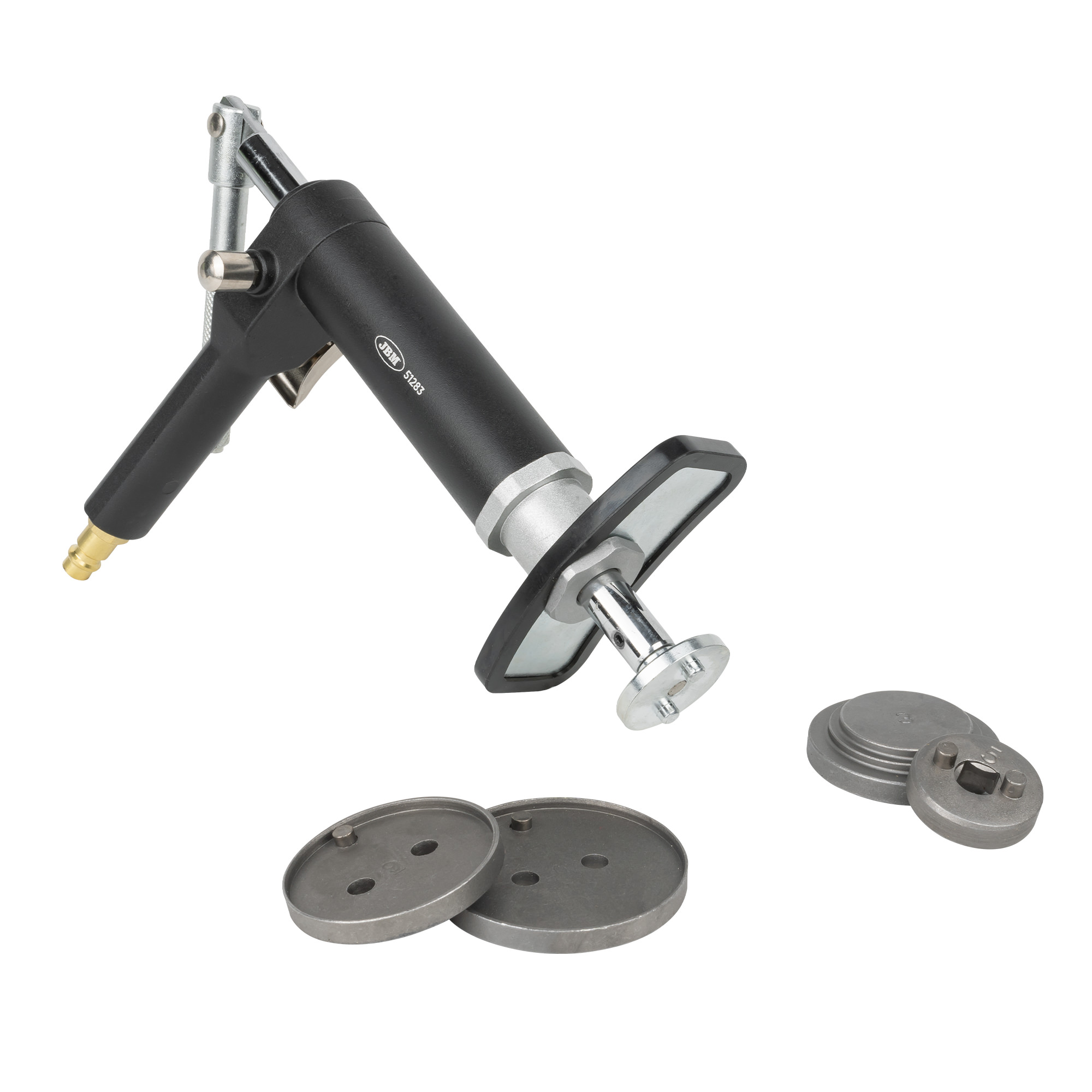 Utensile pneumatico, il che signifca che va collegato ad un compressore ad aria compressa, che permette di riposizionare agevolmente i pistoni del freno nell'alloggiamento della pinza. Possibilità di erogare una pressione costante, la leva incernierata può essere ruotata sia a destra che a sinistra per riavvolgere i pistoncini con precisione e senza sforzo. Attacco magnetico dell’albero.