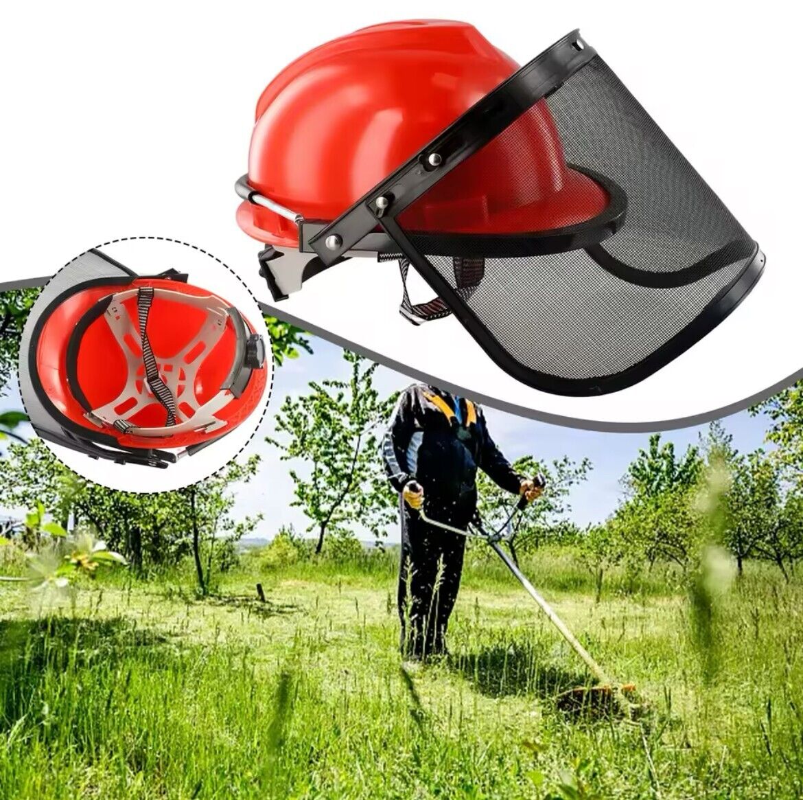 Casco elmetto con visiera a rete protettivo per giardinaggio elmo tagliaerba