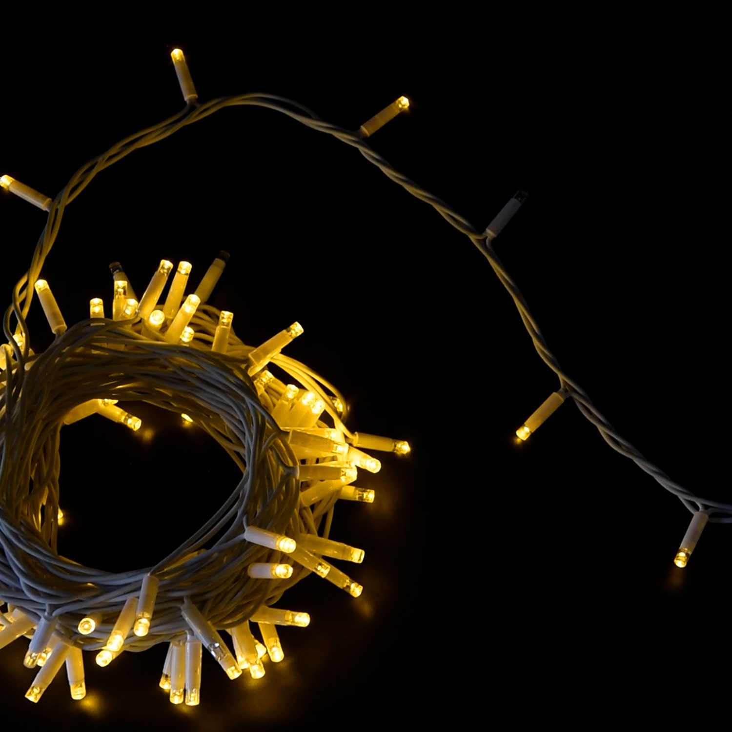 Infografica Catena 100 LED Cavo Bianco da 10 Metri Luce 90% Oro Fissa e 10% Bianca Flash