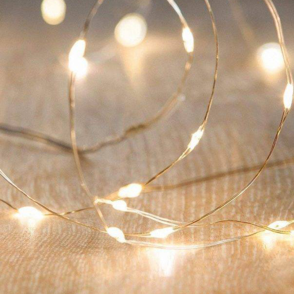 Catena 100 micro led 10mt filo rame batteria da esterno luce calda Telecomando