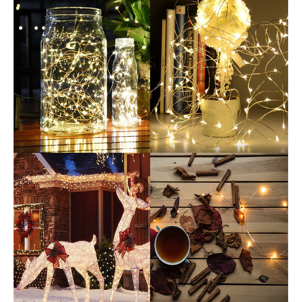Catena 100 micro led 10mt filo rame batteria da esterno luce calda Telecomando