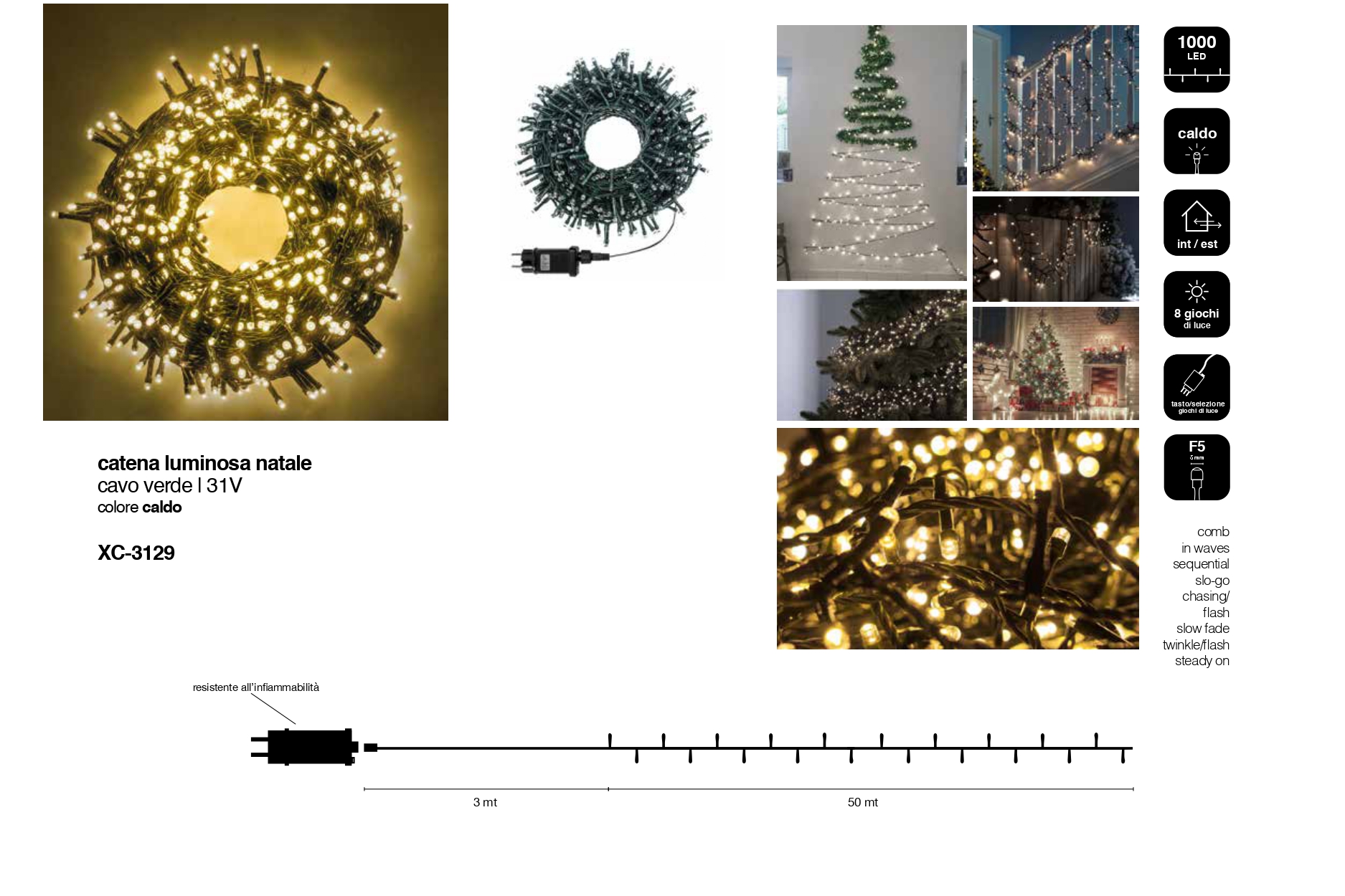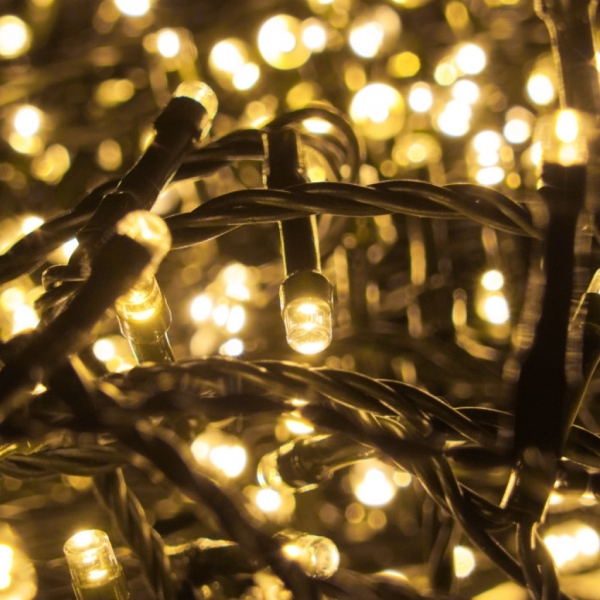 Catena luci di Natale 1000 led 31v con cavo verde e luce bianca calda 50mt
