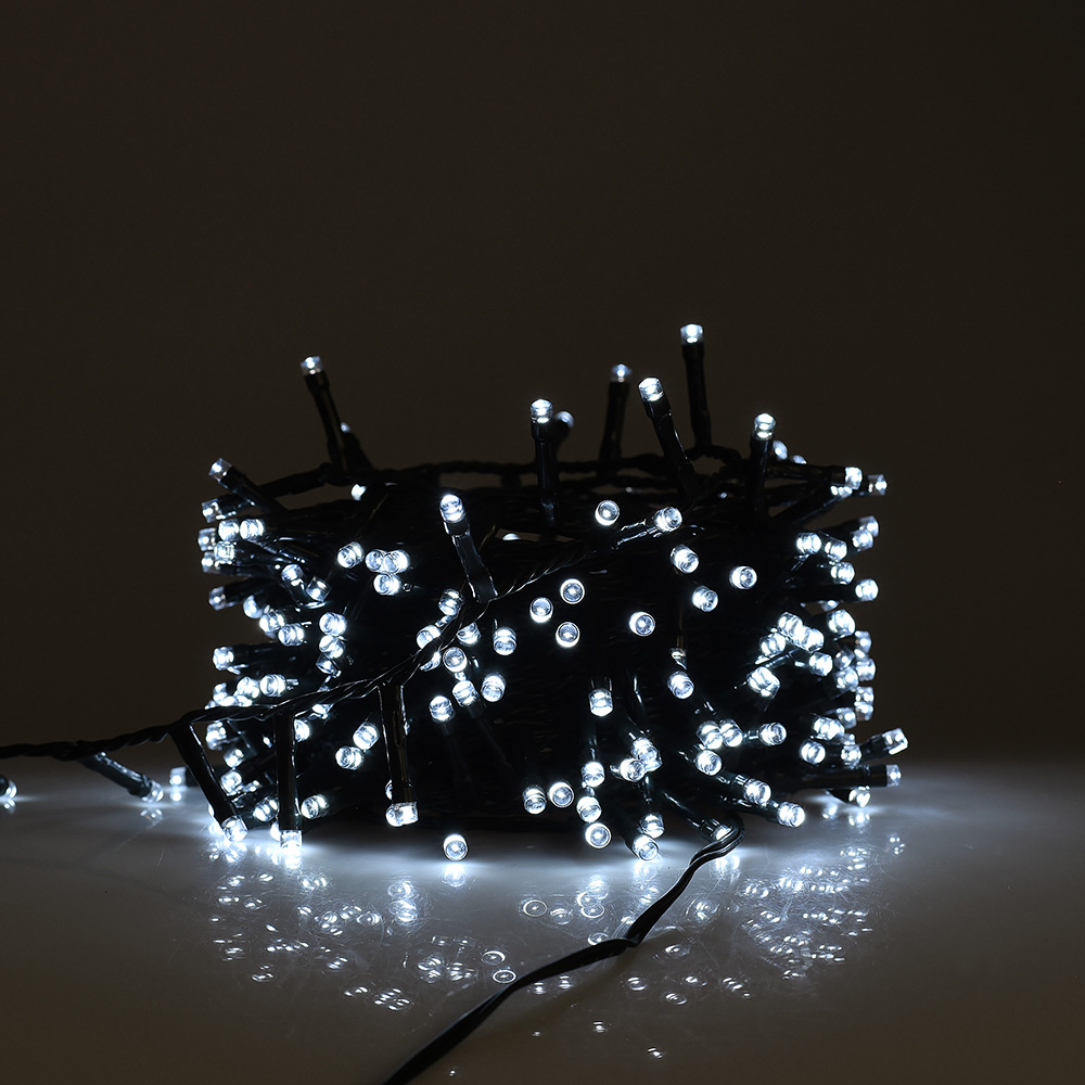 Catena luminosa natalizia con 4000 led luce bianca fredda 100mt di catena 36V cavo verde decorare il Natale spazi esterno interno albero e balconi con 8 giochi