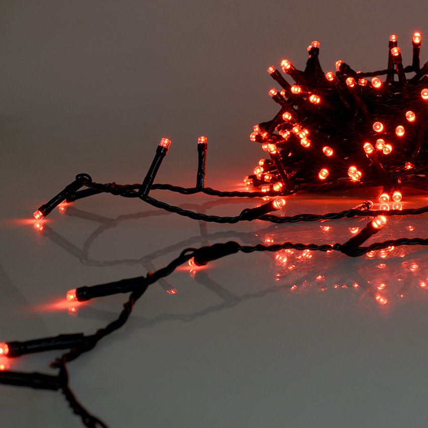 CATENA LUMINOSA 500 LED DA 25 METRI CON CAVO VERDE E LUCE ROSSA - DECORAZIONE LUMINOSA PER INTERNI ED ESTERNI