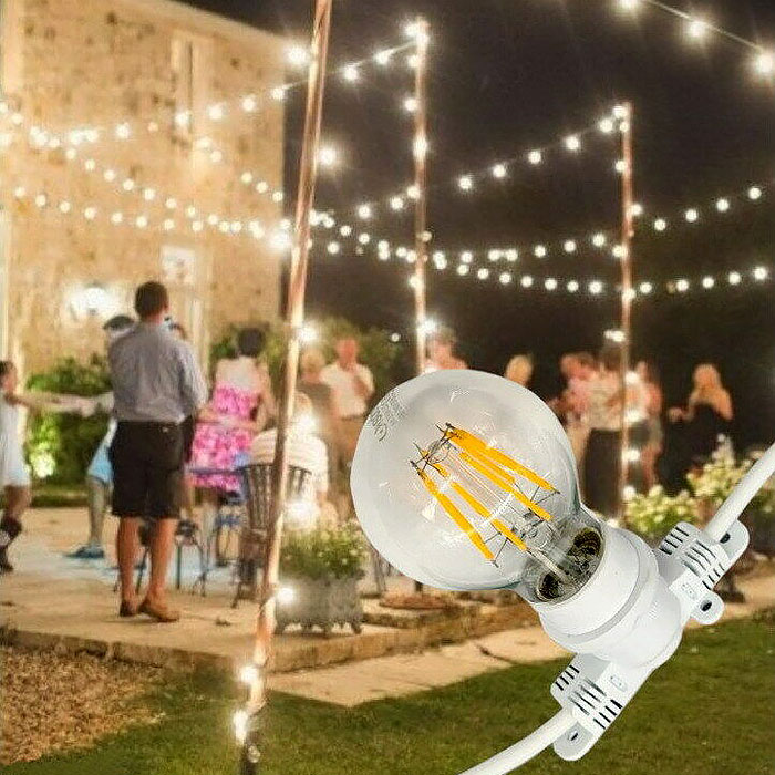 Colore del cavo Bianco, ottima soluzione sopra tutto per eventi come matrimoni, comunioni, battesimi o semplicemente eventi e party esclusivi, da rendere magici con questa catenaria dal fascino vintage retrò.