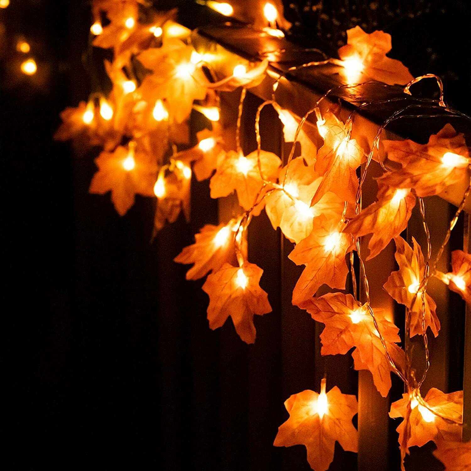 Catena luminosa con foglie d'acero e 10 led a luce calda, ottima per decorare la vostra abitazione per eventi come halloween, natale o semplicemente potete usarle come decorazioni autunnali.