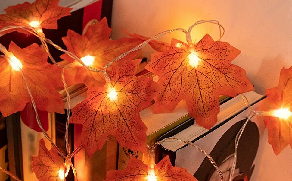 Catena luminosa con foglie d'acero e 10 led a luce calda, ottima per decorare la vostra abitazione per eventi come halloween, natale o semplicemente potete usarle come decorazioni autunnali.