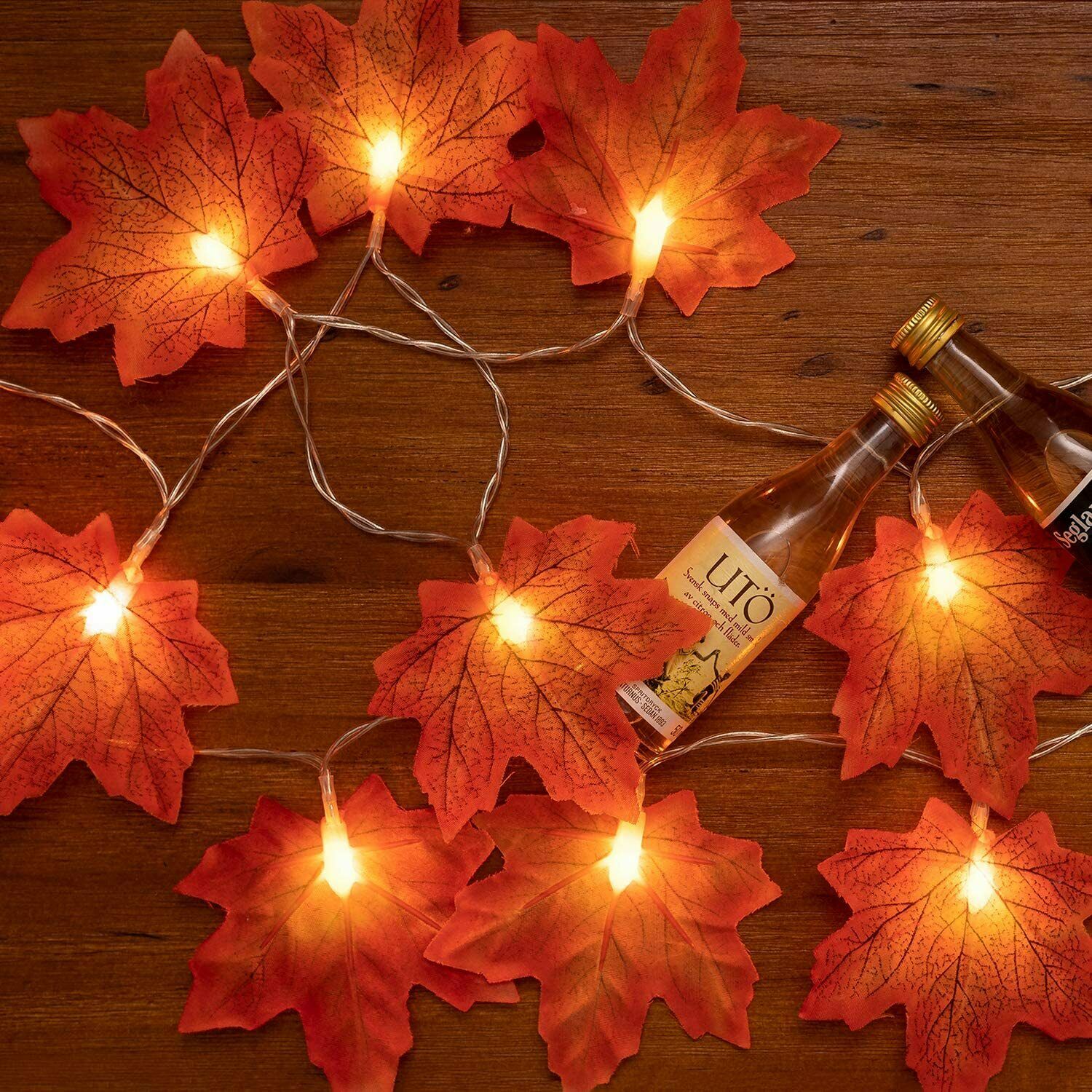 Catena luminosa con foglie d'acero e 10 led a luce calda, ottima per decorare la vostra abitazione per eventi come halloween, natale o semplicemente potete usarle come decorazioni autunnali.