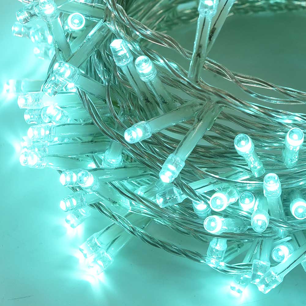 Questa catena luminosa LED da 500 luci con una lunghezza complessiva di 25 metri e un cavo trasparente è una soluzione ideale per decorare e illuminare spazi sia interni che esterni. Grazie al colore unico e suggestivo delle luci LED verde acqua marina, questa catena rappresenta un'ottima scelta per chi cerca un'illuminazione elegante e accattivante, perfetta per creare atmosfere calde e sofisticate durante le feste o eventi speciali. L’aspetto distintivo di questa catena è il cavo trasparente, che permette alle luci di risaltare senza essere disturbate dalla presenza di cavi visibili, rendendo l'installazione particolarmente elegante. Dotata di 8 modalità di illuminazione, inclusa la luce fissa, la catena permette di scegliere tra diverse opzioni luminose per adattarsi a ogni esigenza decorativa. Il controller integrato offre effetti come il lampeggiante, il dissolvenza e altri giochi di luce che donano vivacità all'ambiente. Questo la rende ideale non solo per decorazioni stagionali come il Natale, ma anche per allestimenti di vetrine, decorazioni di giardini, gazebi, balconi o spazi esterni. La catena ha una classificazione IP44, che garantisce protezione da schizzi d'acqua e polvere, rendendola sicura e affidabile anche per installazioni in spazi esterni esposti. Il basso voltaggio di alimentazione a 31V, fornito tramite un trasformatore incluso, garantisce sicurezza e consumi ridotti, mantenendo comunque un’illuminazione intensa. Il cavo di alimentazione da 3 metri assicura un'ampia libertà di posizionamento e la possibilità di installare la catena senza dover ricorrere a prolunghe. Con una frequenza di funzionamento a 50/60 Hz, questa catena LED è stabile e resistente, anche per utilizzi prolungati. La distanza tra ogni LED è di 5 cm, il che consente una distribuzione uniforme delle luci lungo tutta la lunghezza, per un’illuminazione omogenea e ben bilanciata. Con una forma flessibile e facilmente adattabile, la catena può essere avvolta intorno a strutture come alberi, ringhiere o contorni di finestre, offrendo una grande versatilità di installazione. Questo prodotto rappresenta una soluzione di illuminazione pratica, elegante e sicura, pensata per chi desidera un'illuminazione esteticamente gradevole, che esalta gli spazi senza compromettere la qualità e la durata. Le luci verde acqua marina sono particolarmente adatte per creare un'atmosfera rilassante e accogliente, che rende ogni ambiente unico e piacevole