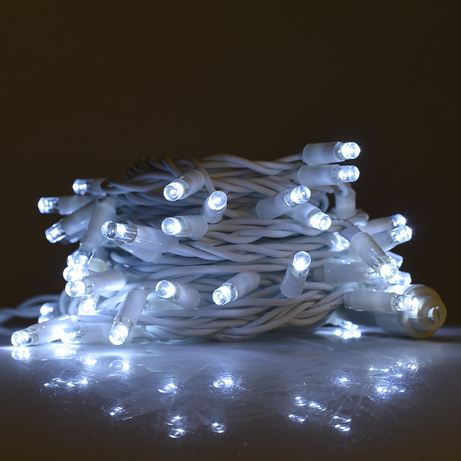 CATENA LUMINOSA 100 MAXI-LED CAVO BIANCO PROLUNGABILE CON LUCE BIANCA FISSA E INTERMITTENTE - PER DECORAZIONI EFFETTO CIELO STELLATO